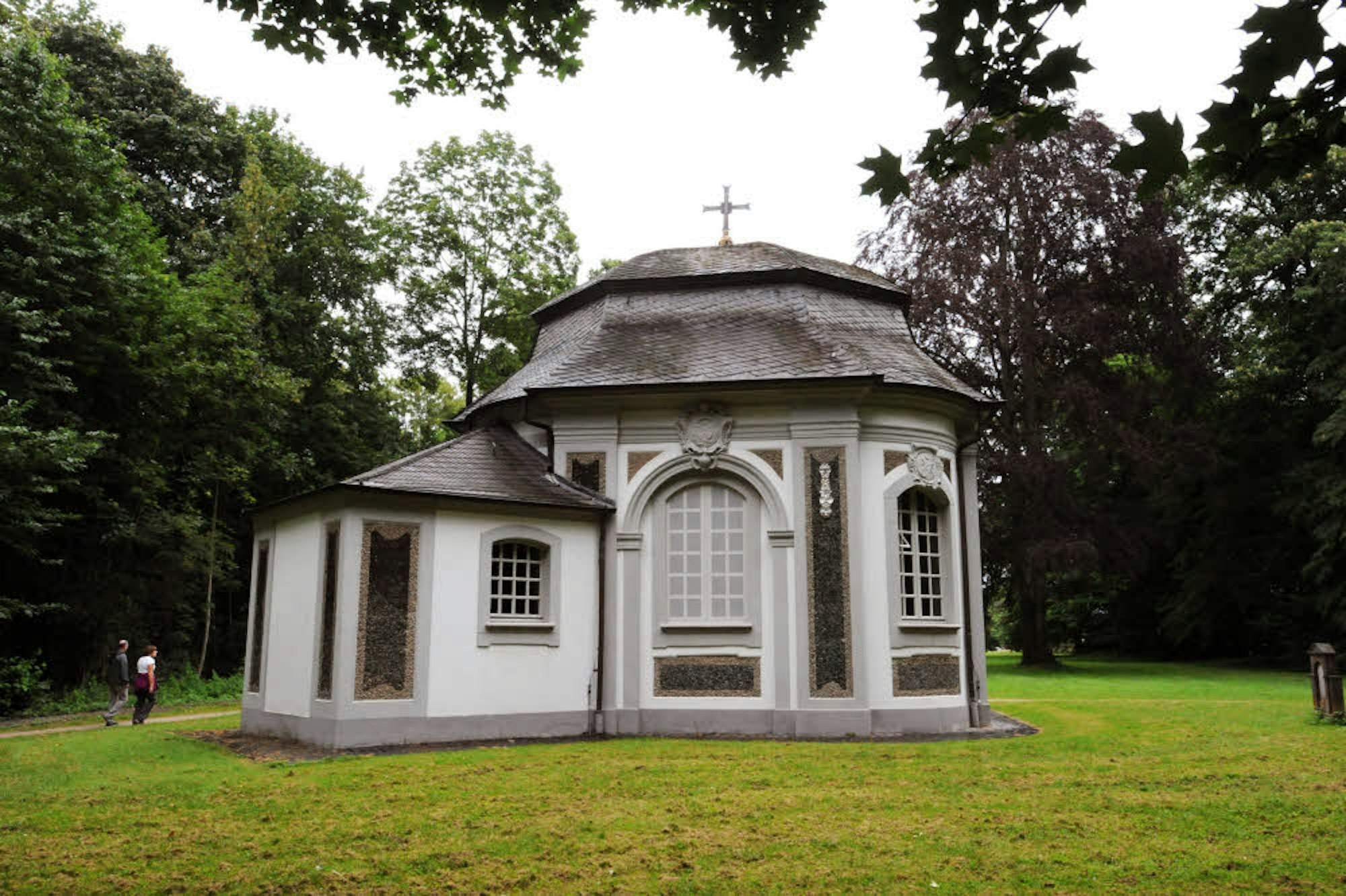 Die Muschelkapelle steht im lauschigen Park des Jagdschlosses.
