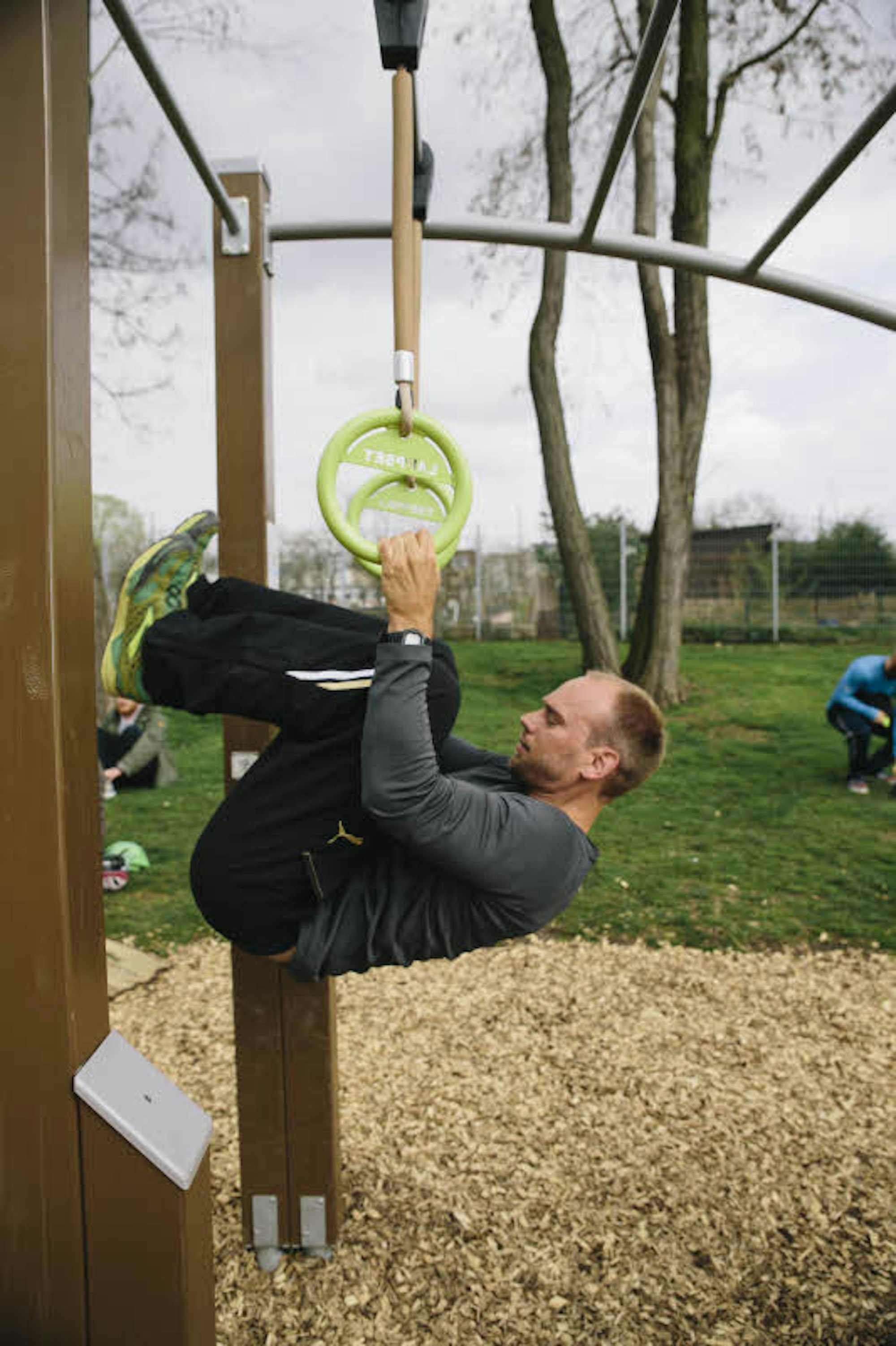 „Der Vorteil an einem gut ausgestatteten Parcours, wie diesem im Grüngürtel, ist, dass man in kurzer Zeit viele verschiedene Übungen machen kann. Sowohl Kraft als auch Koordination können trainiert werden.“ Der derzeit in der Fitnesswelt aktuelle Gedanke, mit dem eigenen Körpergewicht zu trainieren, komme außerdem im Draußen-Studio gut zur Geltung.