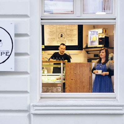 Das Mittagsgeschäft wird ruhiger. Der Koch steht vor der Tür, kurze Pause. Ständig bleiben Passanten im Regen stehen: „Was gibt’s morgen bei euch?“ „Frikadellen, Möhren-Durcheinander, Petersilienkartoffeln.“ „Geil! Bis morgen.“ Winek Przybysz ist ein Vollblutkoch – hitzig, redet ohne Punkt und Komma, wild gestikulierend, irgendwie herzlich: „Hier ist jeder willkommen. Wir kochen lokal, regional, natürliche Produkte. Täglich frisch.“ Besitzer Felix Lang nickt milde grinsend. Gutes Team, gutes Konzept, bitte mehr davon.