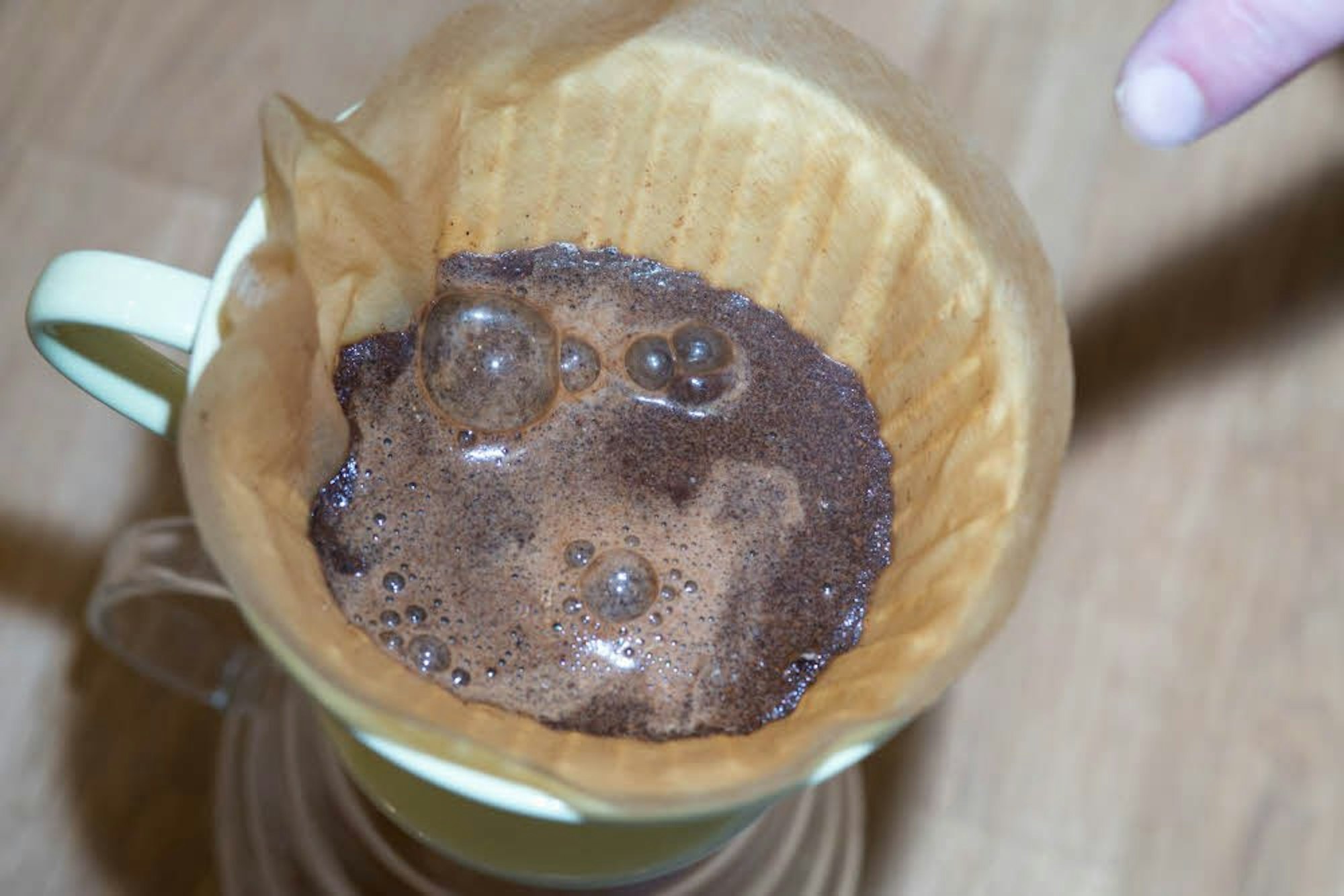 Bei der Zubereitung eines klassischen Filterkaffees empfiehlt Lau den Papierfilter leicht anzufeuchten. Erst dann dürfe das frisch gemahlene Kaffeepulver eingefüllt werden. Faustregel dafür: Auf einen Liter Wasser kommen 55-60 Gramm Kaffee. Das Wasser (92-96 Grad) zunächst nur soweit auffüllen, dass das Pulver gerade bedeckt ist, dann 30 Sekunden quellen lassen. Das typische Blubbern entstehe, weil sich beim ersten Kontakt mit dem Wasser Kohlendioxid auslöse. Je mehr es blubbere, umso frischer sei der Kaffee. Danach in langsam kreisenden Bewegungen für regelmäßigen Wasserfluss sorgen. Damit nicht zu viele Bitterstoffe ausgewaschen werden, sollte der Wasserdurchfluss nicht länger als drei Minuten dauern.