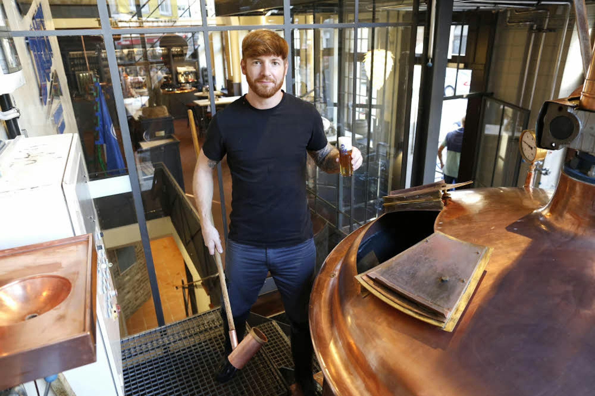 Brauer Peter Köcher setzt im Kupferkessel die Duex-Biere an.