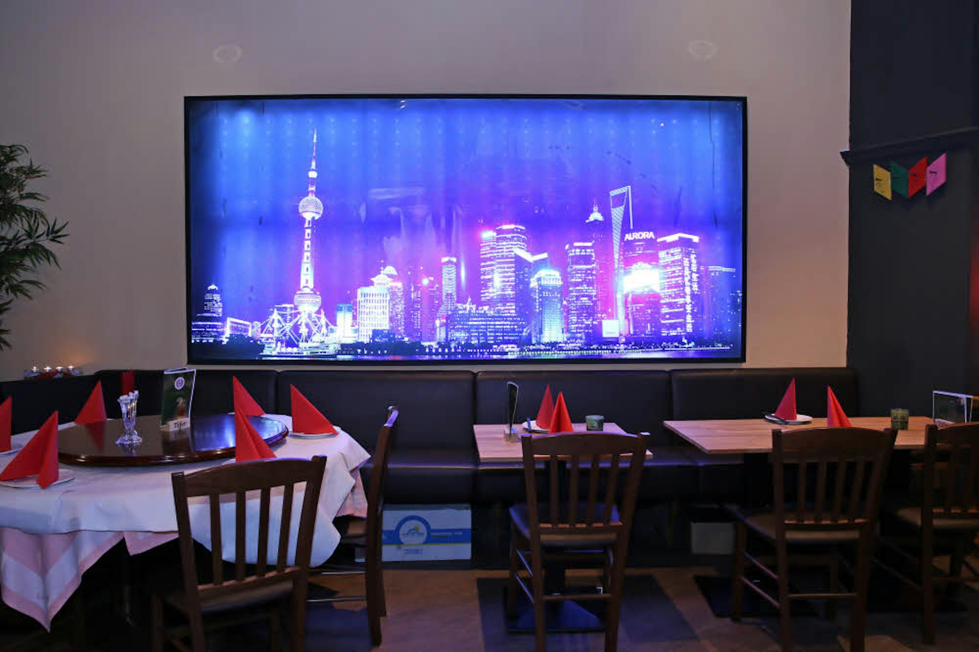 In der Shanghai Küche wird unprätentiös vor der Skyline gegessen.