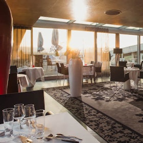In der 17. Etage des Bonner Marriott Hotels präsentiert das Restaurant Konrad's kulinarische Vielfalt zum Sonntagsbrunch. Erwachsene 49 Euro, Kinder von 6 bis 12 Jahren zahlen die Hälfte. Auch abends zum Dinner geöffnet. Der Blick reicht bis zum Siebengebirge.