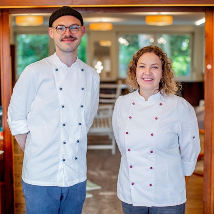 Im ehemals sehr halligen Restaurant wird ein Teppich für eine angenehmere Atmosphäre sorgen, und Handystühle dafür, dass die digitalen Störenfriede nicht mehr auf dem Tisch liegen. Verabschieden müssen sich Gäste vom Zweitrestaurant „The Bayleaf“. Die Fläche wird zukünftig für Küchengeräte und als Lagerraum, zum Beispiel für Getrocknetes oder Fermentiertes genutzt.Das neue, begleitende Weinmenü heißt „Alpha bis Omega“ und wurde von Yuriy Apelyushynskyy konzipiert: „Wir erzählen damit die Geschichte des Weins vom Ursprung bis heute.“