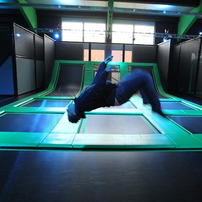 Mehr als 60 unterschiedliche Trampoline finden hier Platz, auch auf ein „Ninja“-Geschicklichkeitsparcours und eine Flugseilbahn unter der Decke lockt die Besucher. Unter den Trampolinen fallen die so genannten Tumble Tracks auf, extra lange Trampolinbahnen, auf denen man schon am Eröffnungstag die ersten Turnerinnen Flick-Flack und andere akrobatische Elemente ihres Sports trainieren sah.