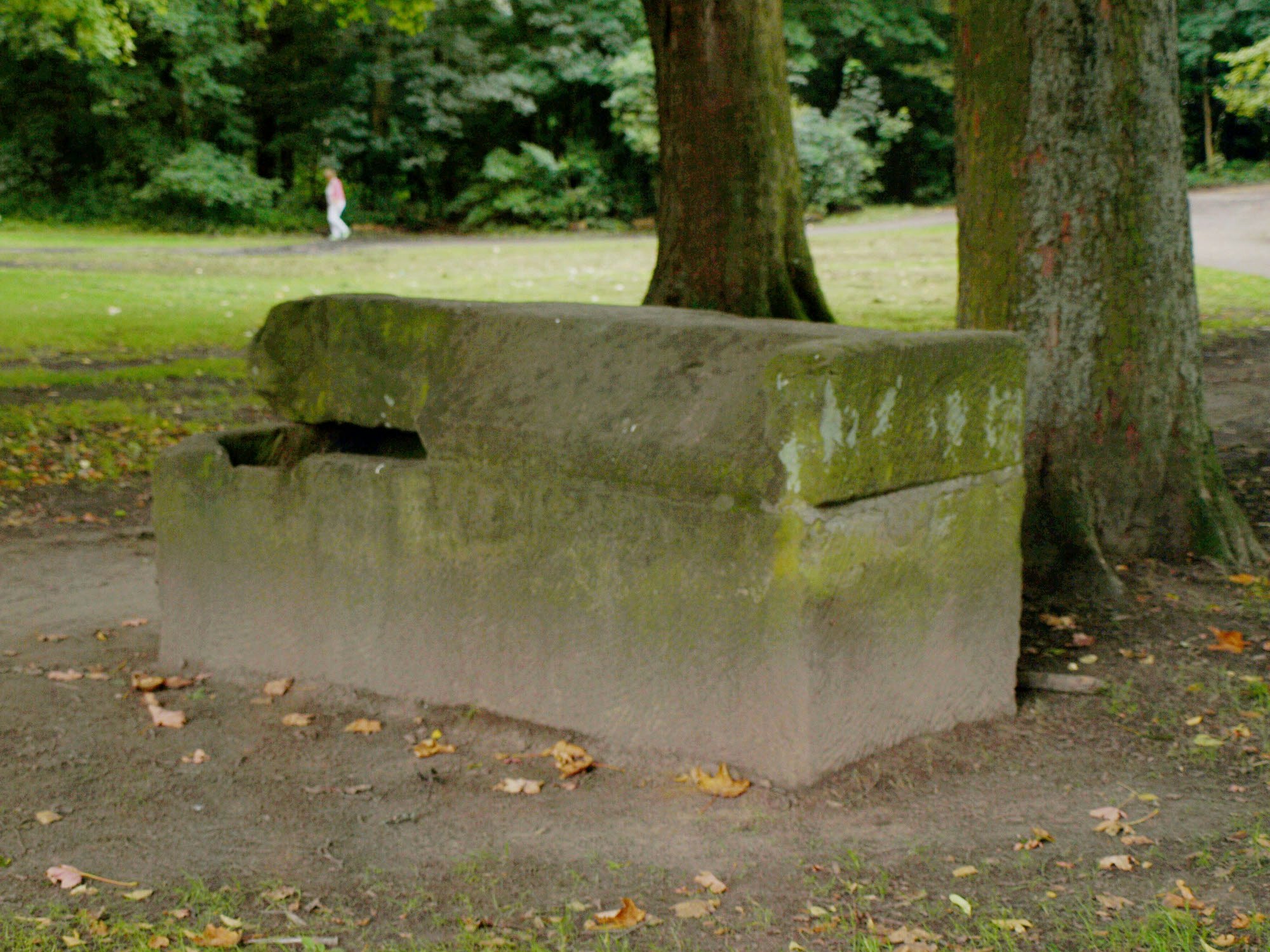 Müngersdorf – . Eine grünschimmernde Moosschicht auf dem sandsteinernen Behältnis beweist, dass es schon lange dort gestanden haben muss, zwischen Jahn-Wiese und Adenauer-Weiher. Wie alt der Steinkasten und was er eigentlich ist, wussten bislang die allerwenigsten Besucher des Stadtwalds, die täglich daran vorbeispazieren.