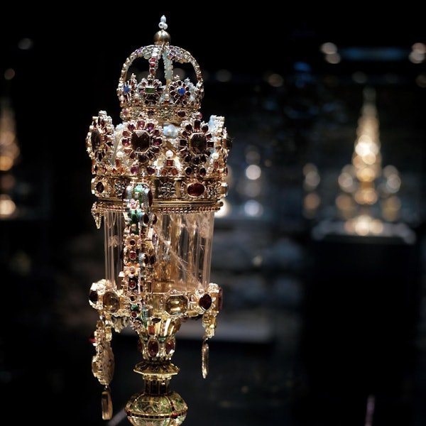 Danach kamen sie in den Dom. Ihre Gebeine befinden sich tatsächlich in dem schlichten, klassizistischen Sarkophag aus Holz, neben dem auf Schieferplatten gemalte Bilder von Richeza und Erzbischof Anno aus der mittelalterlichen Grabanlage in St. Maria ad Gradus hängen.Ich war einmal bei einer Öffnung des Sarkophags dabei, als die Polen um eine Reliquie gebeten hatten. Das ist ein hochoffizieller Akt, bei dem auch immer ein Bischof anwesend sein muss. Aber bei der Öffnung musste ich dann doch unwillkürlich schmunzeln: Irgendein ordnungsliebender Mensch hatte die Gebeine der Königin fein säuberlich nach Knochenarten geordnet und in Cellophan verpackt: Rippen, Bein- und Armknochen und so weiter. Und Richezas Schädel trägt noch die originale goldene Seidenhaube mit gesticktem Netzmuster.