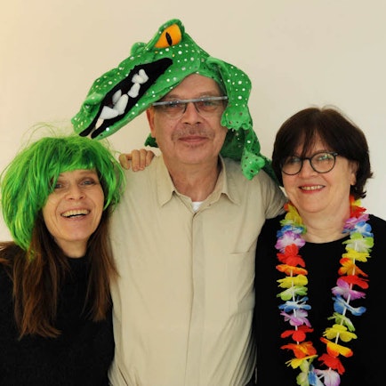 Also laufen sie in sehr fantasievoll gestalteten 4711-, Kölsch-, Tankstellen- und auch Bestatterkostümen („Wir geben Ihrer Zukunft ein Zuhause“) mit. Ulla Phillipp macht Werbung für den 1. Kölner Event-Windel-Verleih – aus aktuellem Anlass für die Karnevalisten, die es nicht zur Toilette schaffen. „Wir lassen so richtig die Sau raus beim Zug, sind laut und wild“, sagt sie. In der Gruppe geben schnelle Trommeln, Bongos und Tamburine den Takt an.