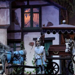 Die Kulissen für die jüngsten Stücke „D’r Museumsbesök“ und „En schäle Biesterei“ sind abgebaut und zurück in der Werkstatt in Poll. Alle eingesetzten Puppen und Requisiten sind verstaut. Lediglich Hänneschen und Bärbelchen halten die Stellung. Sie sitzen entspannt im Schaufenster an der Markmannsgasse auf zwei Gartenstühlen und grüßen die Passanten.