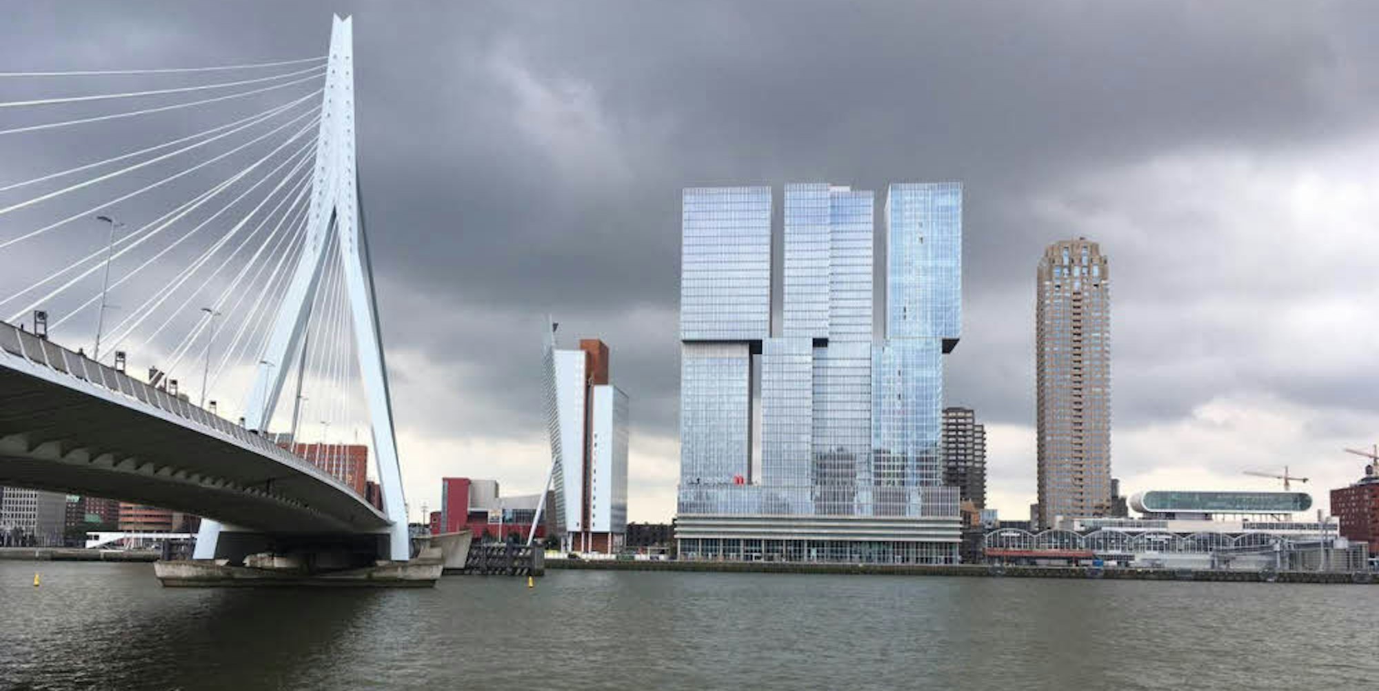 Der Hochhaus-Komplex De Rotterdam beherbergt ein Hotel, Büros und Wohnungen.