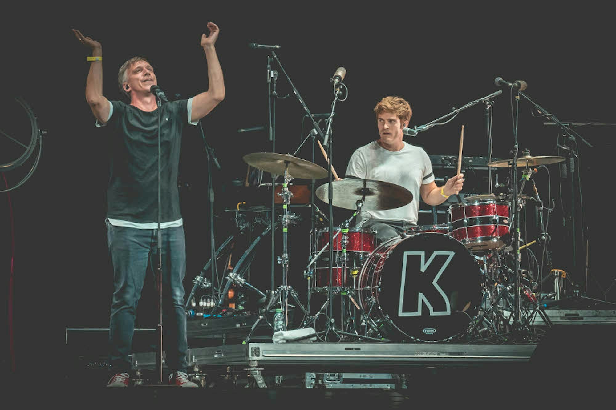 Und einer aus der Band war sichtlich glücklich und zufrieden: Das Stadionkonzert war das Comeback für Schlagzeuger Nils Plum, der mehr als ein halben Jahr wegen einer Schulterverletzung pausieren musste und in der Zeit vom befreundeten Drummer-Kollegen Lukas Berg ersetzt worden war. „So ein Konzert kann man dann als Einstand schon mal machen“, witzelte Campmann und Peil fügte lachend hinzu, dass Plum ja nichts Neues lernen musste. „Die Lieder kennt er natürlich alle noch.“