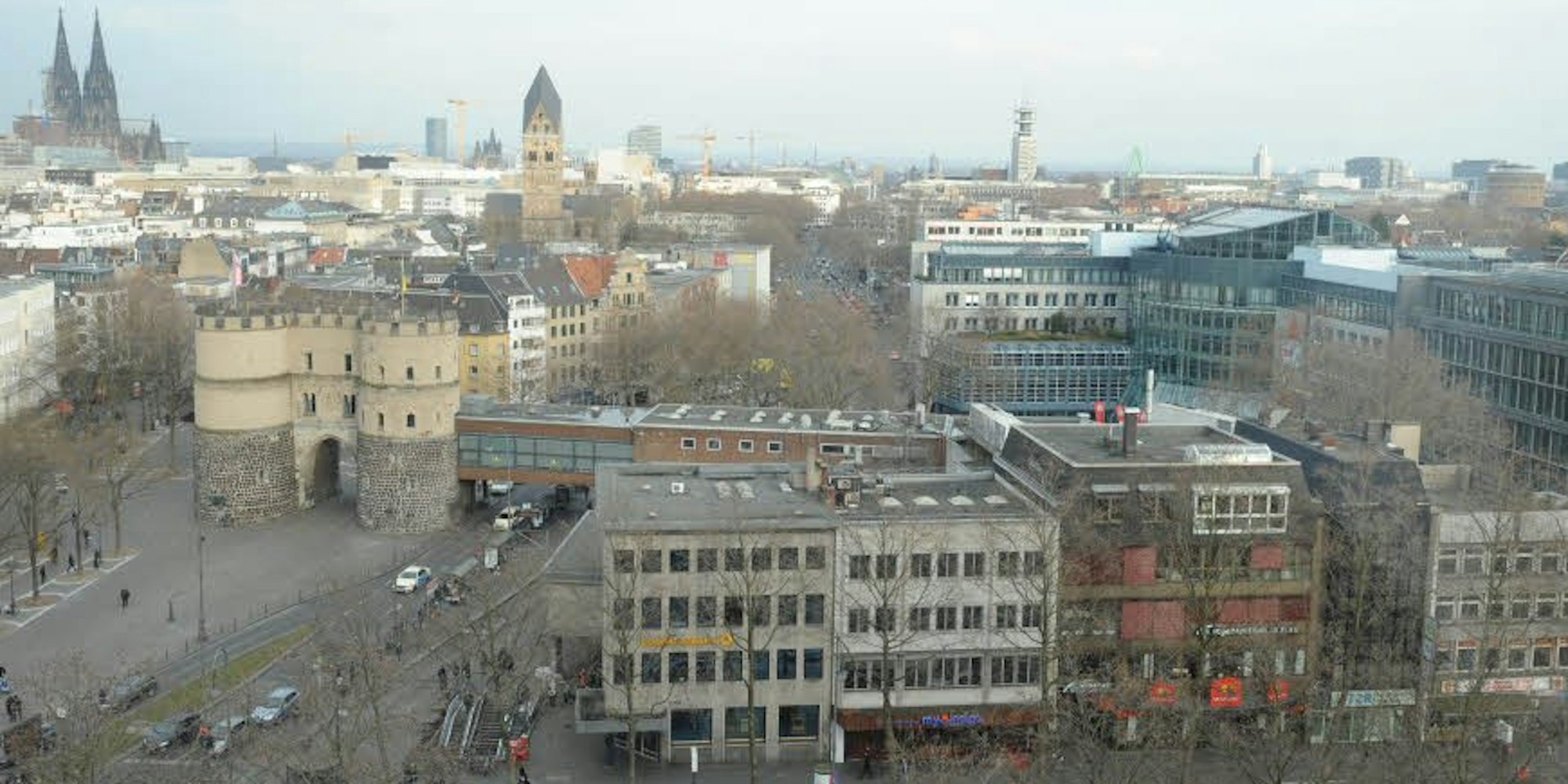 Blick aus Richtung Hahnenstraße auf den Neubau, der auch Gastronomie und Geschäfte beheimaten soll.