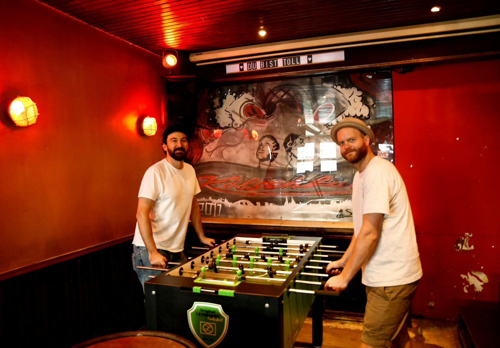 Ironische Akzente, lauter Details an der Bar und Bierkästen, die zu Sitzgelegenheiten umgebaut wurden – eine stimmige Dosis aus Kuriosität und Gemütlichkeit. Der Wohnzimmer-Charakter kommt nicht zuletzt durch die überschaubare Größe auf. Und wenn es mal wieder Zeit für Fußball ist, wird neben den zwei Flachbildschirmen auch eine Leinwand ausgefahren. Wir haben die Betreiber Malte Böttges und Dennis Busch zum Gespräch getroffen.
