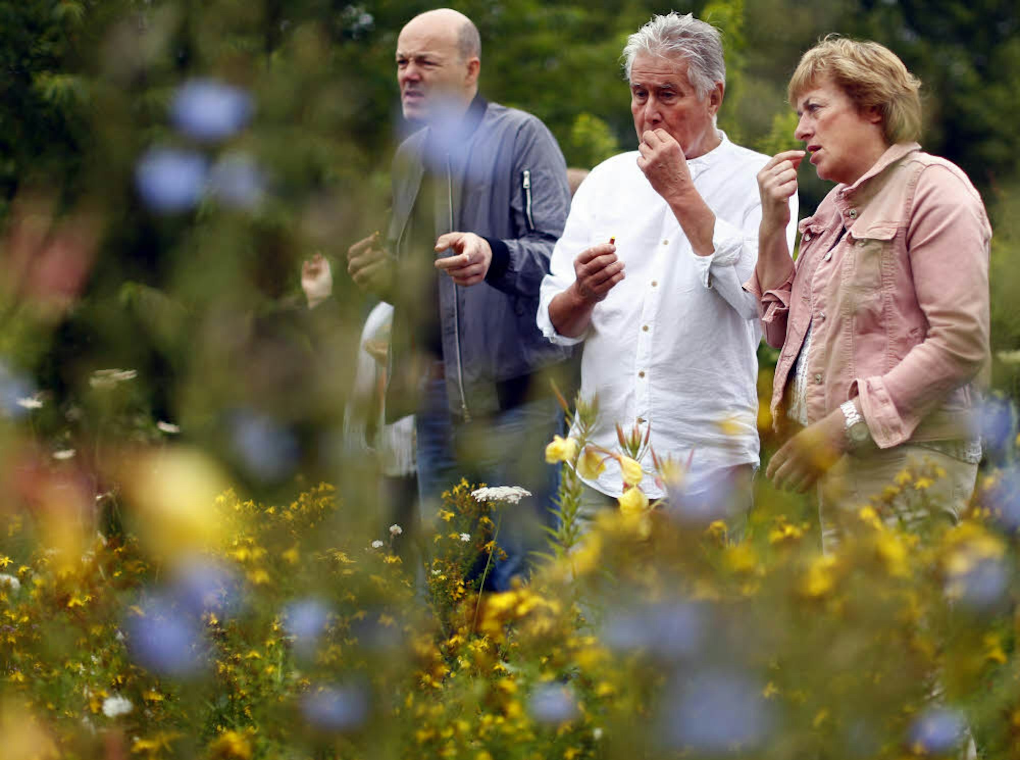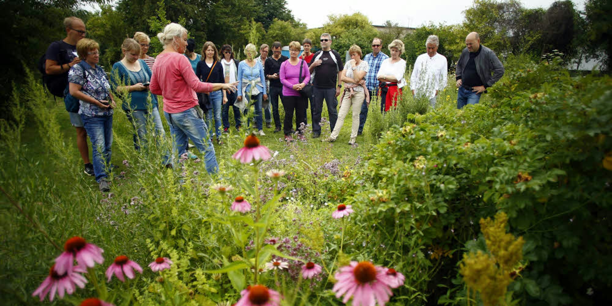Die Notizblöcke werden gezückt, die Runde der Kräuterwanderer ist ein Querschnitt durch die Bevölkerung: Jacqueline ist die Jüngste, ernährungsbewusste Mittvierziger mit Digitalkamera und Wanderschuhen zählen genauso dazu wie der ältere Herr mit weißem Hemd und Haar.