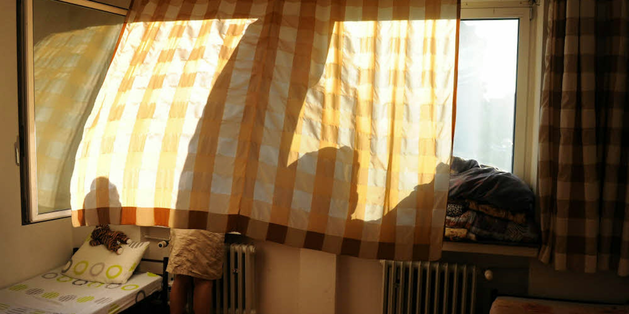 Blick in ein Zimmer einer Kölner Flüchtlingsunterkunft