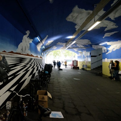Die Bahnstrecke Köln-Aachen im Bereich der Bartholomäus-Schink-Straße: Die Gewölbebögen sind feucht, viele stehen leer.