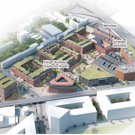 Neben den denkmalgeschützten Gebäuden bleibt weitere alte Bausubstanz erhalten. Dazu gehören die Schwebebahnhallen als Ganzes oder das Eckgebäude im Nordzipfel, das aufgestockt wird. Damit die Neubauten und die alte Industriearchitektur eine Einheit bilden, bekommen erstere Klinkerfassaden. Ein Verkehrskonzept ist weit gediehen. Gröner: „Die Stadt hat kein Geld. Also wird die Straßenbahn von den Investoren finanziert.“