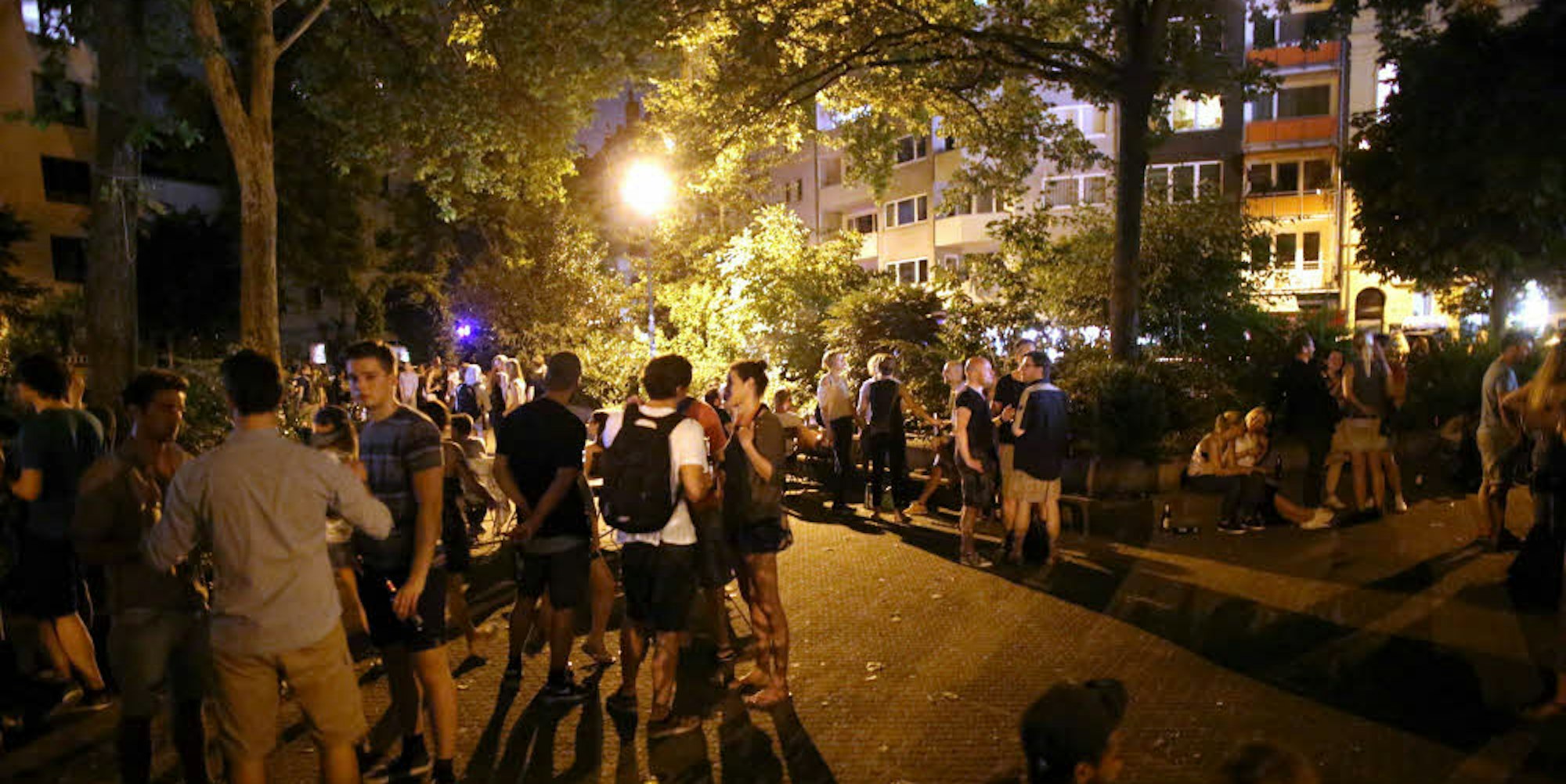 In warmen Nächten feiern mitunter Hunderte auf dem Brüsseler Platz. Mit Lärmwagen geht die Stadt auch gegen diese Ruhestörung vor.