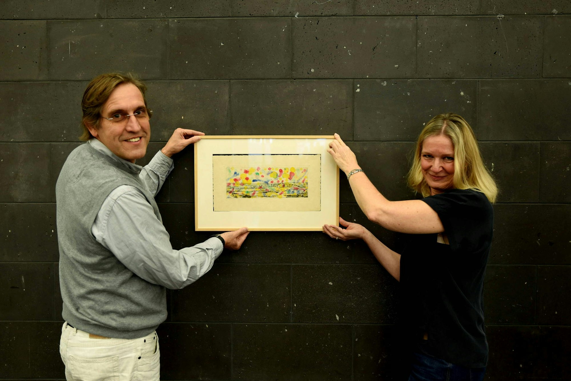 Cornel Wachter (l.) übergibt Polkes Rembrandt an Anja Sevcik vom Wallraf-Richartz-Museum.