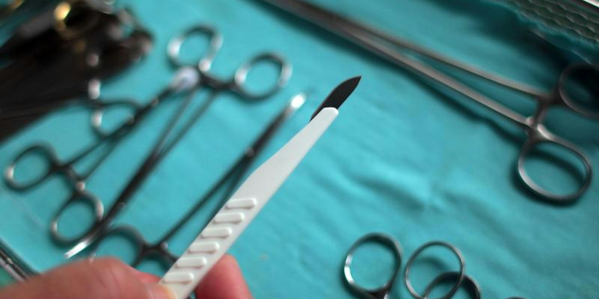 Ein Chirurg hält im OP ein Skalpell in der Hand.