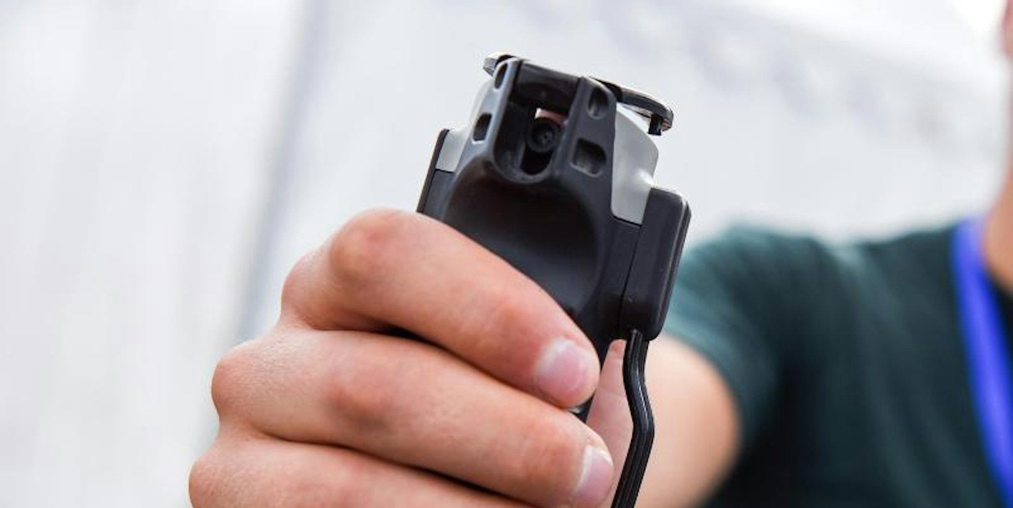 Person hält ein Pfefferspray in der Hand.