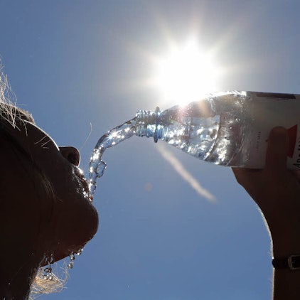 Das A und O ist ausreichende Flüssigkeitszufuhr – bei Hitze mindestens zwei Liter am Tag. Wasser ist am besten. Nicht so gut sind spezielle salzarme Wasser. Daneben sollte man auf die Energiezufuhr durch Zucker achten. Denn die Wärmeregulation verbraucht viel Energie.