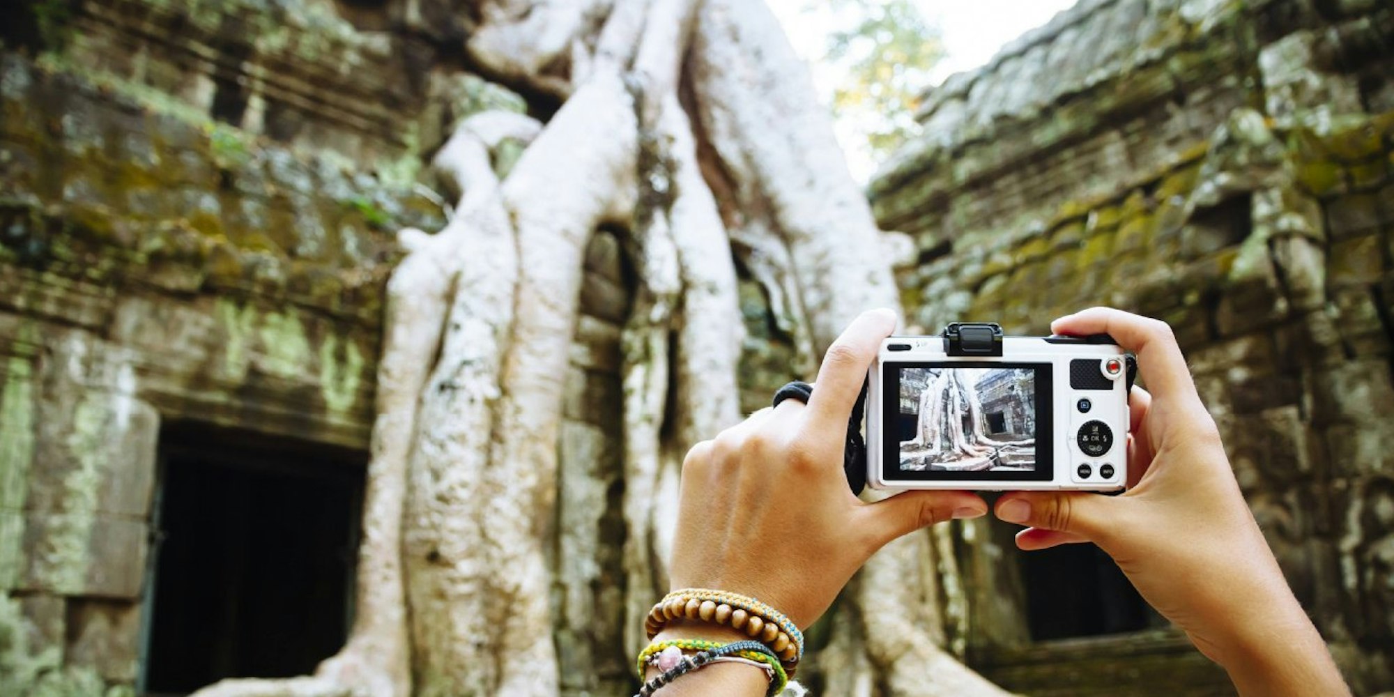 Tempel sind wie Kirchen heilige Orte. Dementsprechend sollten sich Touristen angemessen verhalten. Hier: Tempel Ta Prohm, Angkor-Komplex, Kambodscha.