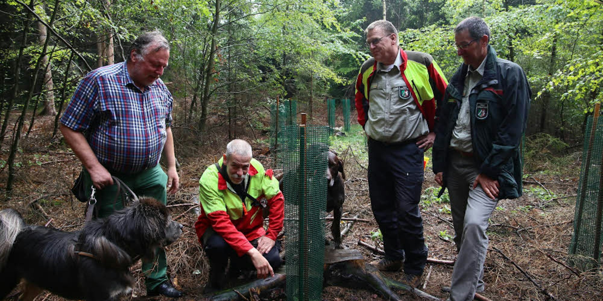 Dem Gotteswald statteten Christoph Böltz (v.r.) und Thomas Maur einen Besuch ab. Das von Thomas Wolfgarten (l.) betreute Areal liegt im Revier von Förster Heinz Benden, der dort im Frühjahr Weißtannen gepflanzt hat.