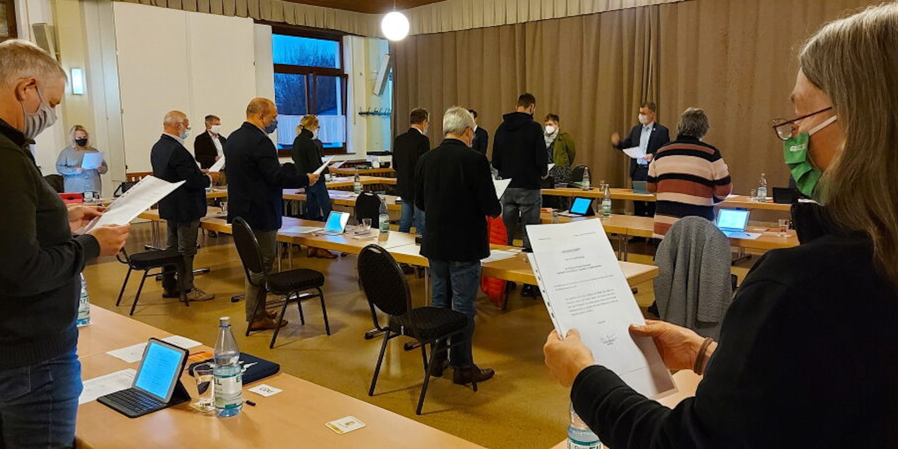 „Vielen Dank! Ich würde jetzt zwar nicht sagen, dass es kein Zurück mehr gibt, aber Sie haben sich verpflichtet.“ Jan Lembach, wiedergewählter Bürgermeister der Gemeinde Dahlem, versuchte es in der ersten Sitzung des Gemeinderates der 11. Wahlperiode der Gemeinde Dahlem mit einem Scherz. Gerade hatten die 21 Mitglieder des neuen Gremiums – der Rat ist mit neun von 21 Mitgliedern, die erstmals gewählt wurden, zu 40 Prozent neu besetzt – gemeinsam ihre Selbstverpflichtungserklärung fürs Amt vom Blatt abgelesen.