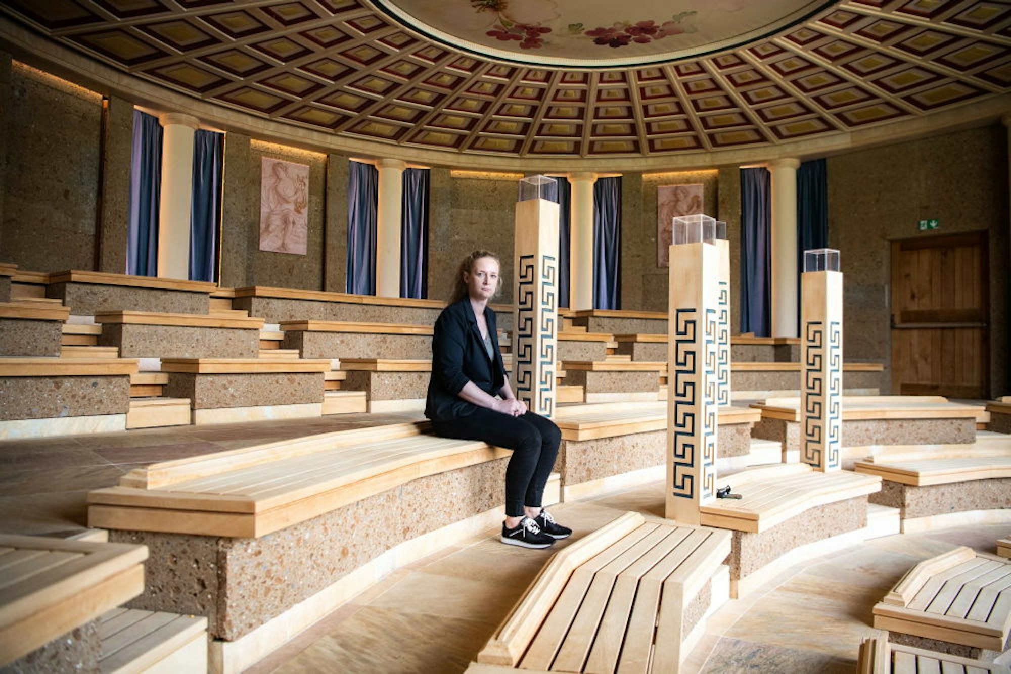 Allein in der Koi-Sauna: Mirja Bernardy, die Geschäftsleiterin der Therme Euskirchen. Sie hofft auf eine baldige Wiedereröffnung.
