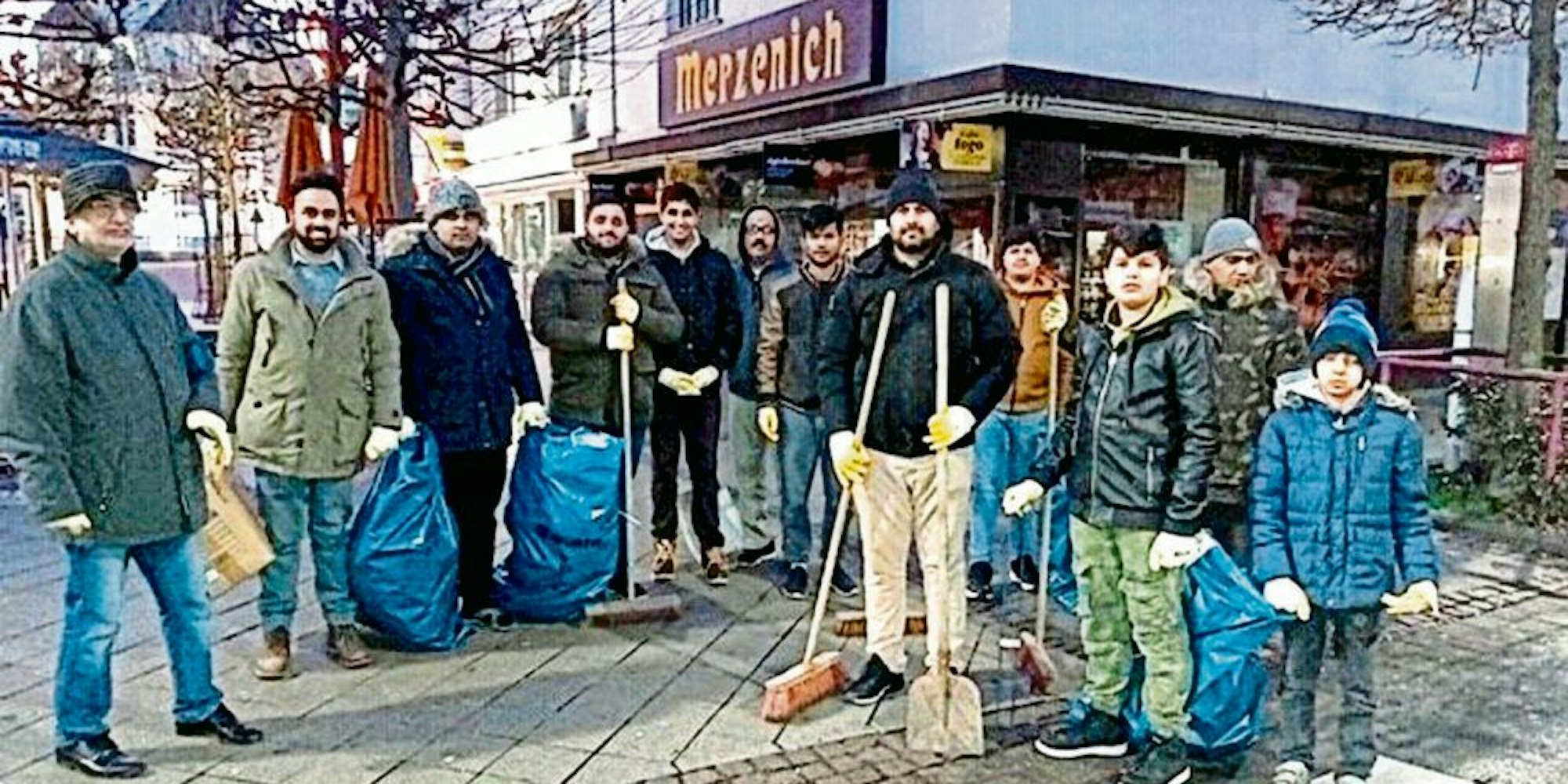 Euskirchen – Es ist 7.30 Uhr am ersten Tag des neuen Jahres. Das Thermometer in der Euskirchener Innenstadt zeigt minus drei Grad. Während sich viele Euskirchener noch von der Silvesternacht erholen, herrscht auf dem Alten Markt emsiges Treiben. Im Licht der Straßenbeleuchtung macht sich der ehemalige Bundesvorsitzende der Ahmadiyya-Muslim-Jugendorganisation Euskirchen, Mubasir Cheema, mit 26 Mitgliedern der Jamaat-Ahmadiyya-Gemeinde daran, Euskirchens Straßen vom liegen gebliebenen Silvestermüll zu säubern.