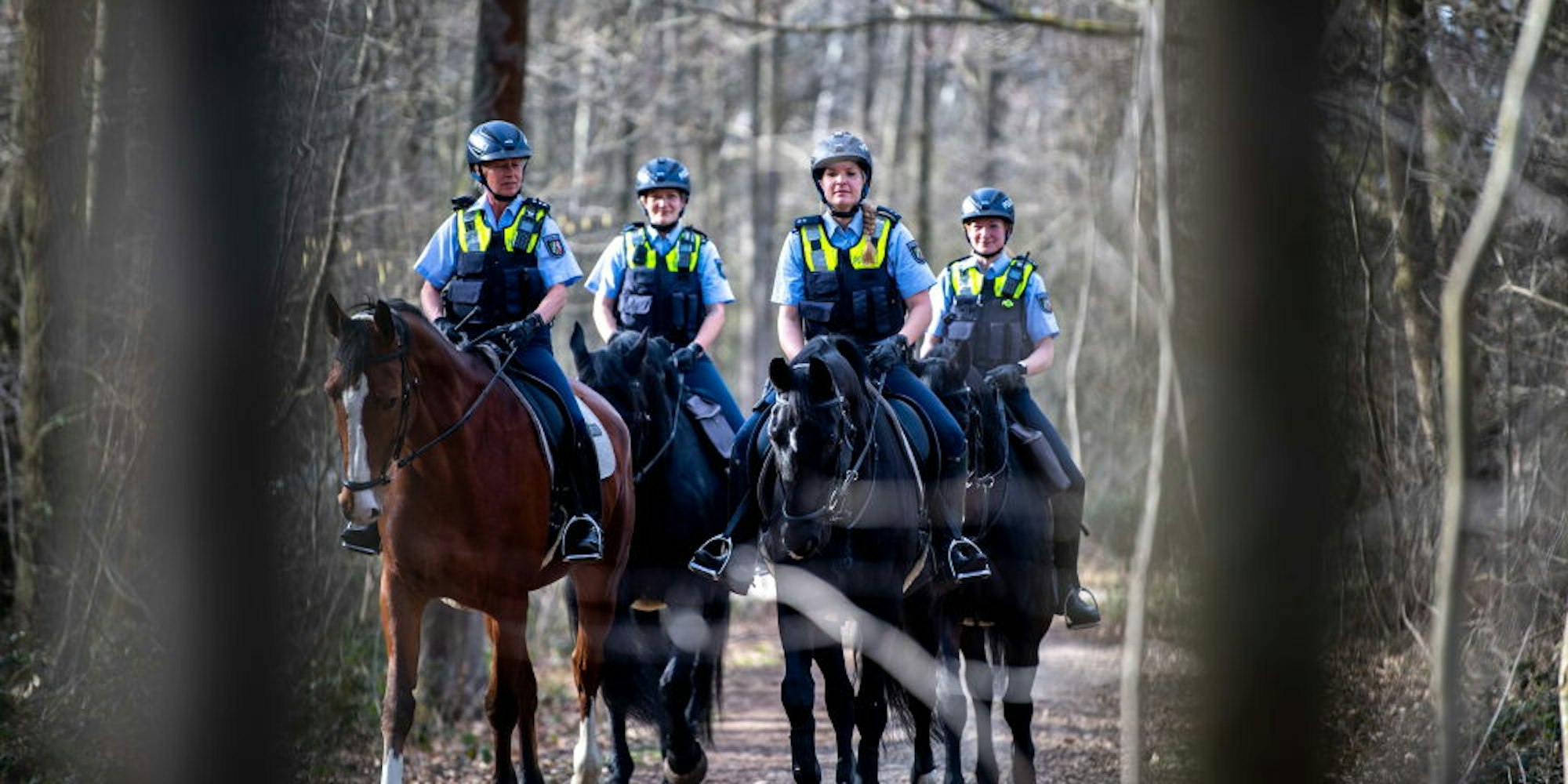Vier Polizistinnen machten sich auf ihren Dienstpferden um 15 Uhr auf den Weg in den Billiger Wald.