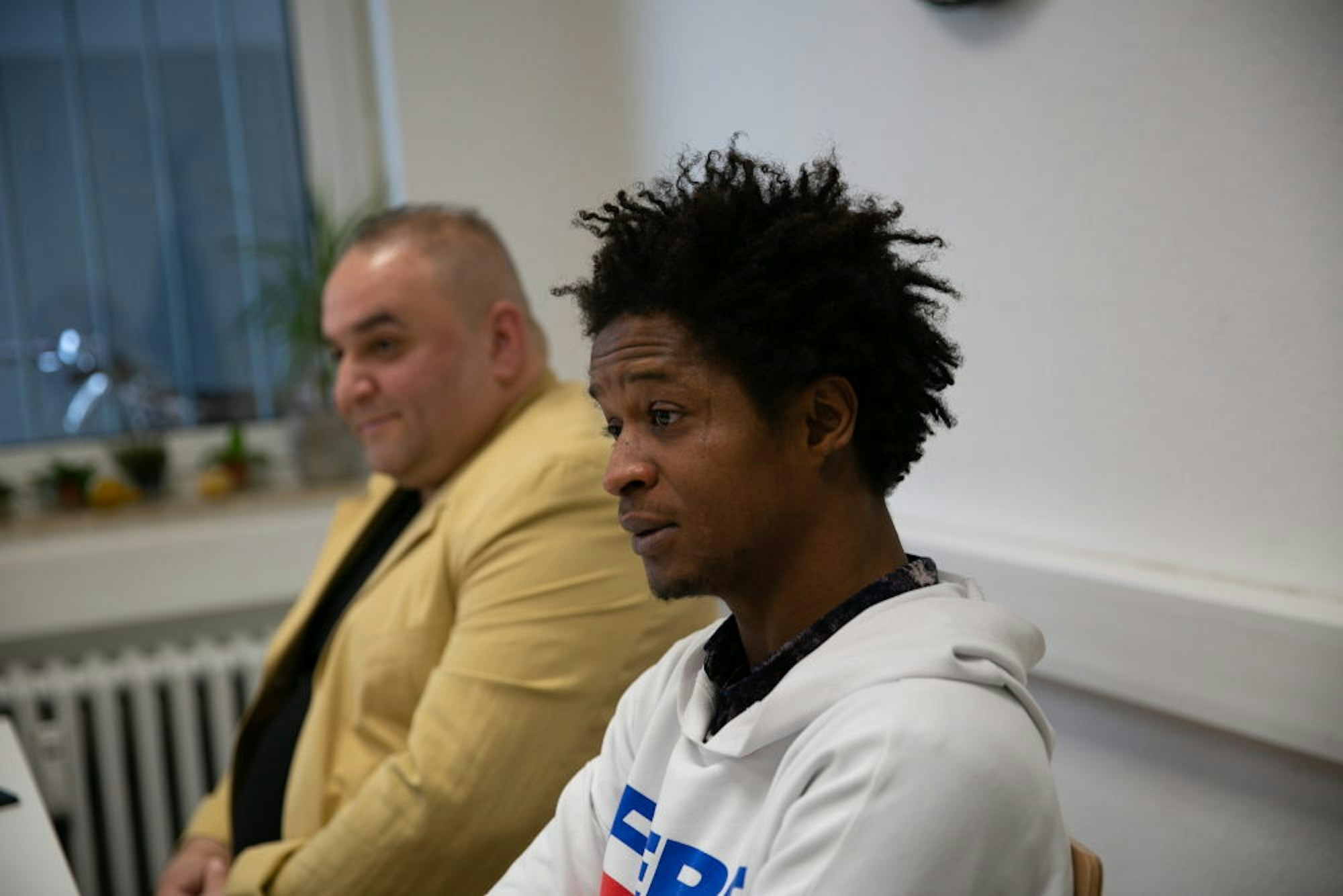 Sprechen ĂĽber Weihnachten: Berufsmusiker Fadi Al Khoury (hinten) und Abdoulghoudoussy Diallo.