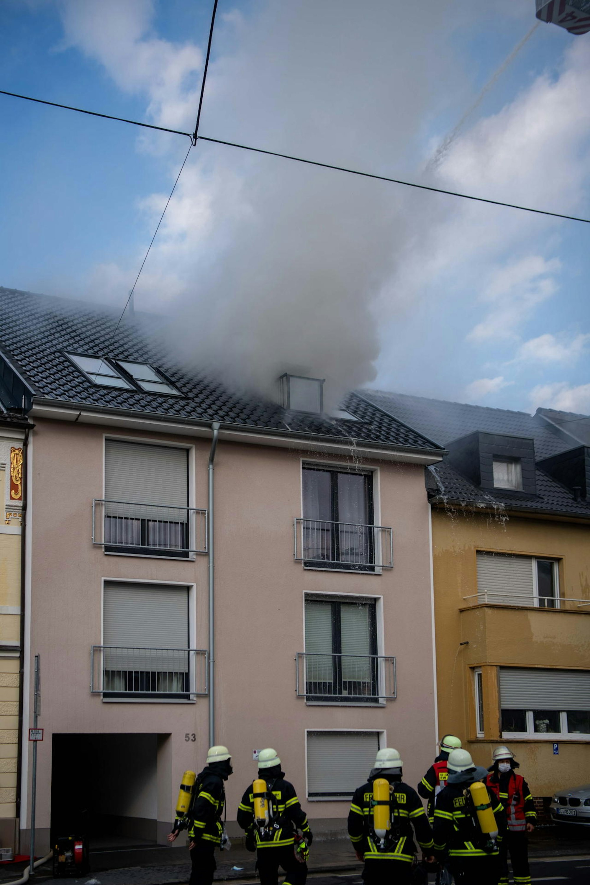 Als die 40 Feuerwehrleute an der Einsatzstelle eintrafen, drangen bereits dunkle Rauchwolken aus den Fenstern. Während sich mehrere Trupps unter Atemschutz übers Treppenhaus bis zum Dachgeschoss ihren Weg bahnten, wurde an der Münstereifeler Straße die Drehleiter in Stellung gebracht. „Durch den gezielten Angriff haben wir ein Übergreifen auf den Dachstuhl verhindert“, sagte Feuerwehrsprecher Daniel Schwarz.