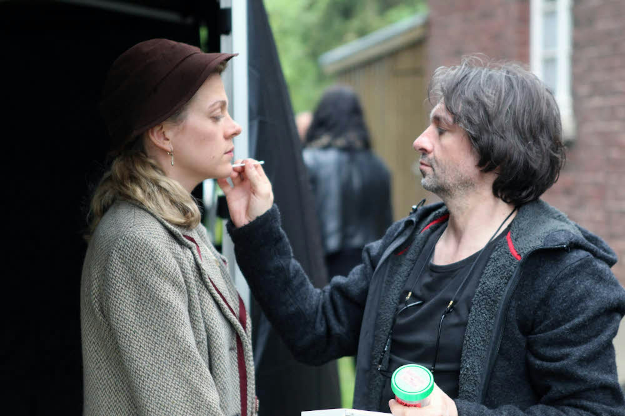 Till Endemann führt Regie. Er raucht eine Zigarette und sagt: „Der Ort hier riecht nach Geschichte.“ Für die Müddesheimer riecht es nach Benzin und Diesel, entlang der Ortsdurchfahrt sind viele Autos geparkt. Ein Gelenkbus hat Mühe, die Bushaltestelle zu erreichen. Rund 100 Komparsen sind in der Kirche eingesetzt. Es wird eine Szene gespielt, in der es um einen Geburtstagsgottesdienst für Hiltrud Jansen geht, eine der Schwestern, gespielt von Hildegard Schmahl. Die Geburtstagsgäste sitzen in den Bänken, die Schwestern betreten die Kirche, nehmen in der ersten Reihe Platz. Ein Pfarrer spricht ein Loblied auf Hiltrud und beginnt mit dem Gottesdienst, die Schwestern beten. So steht es in der Szeneninformation zum Drehtag.