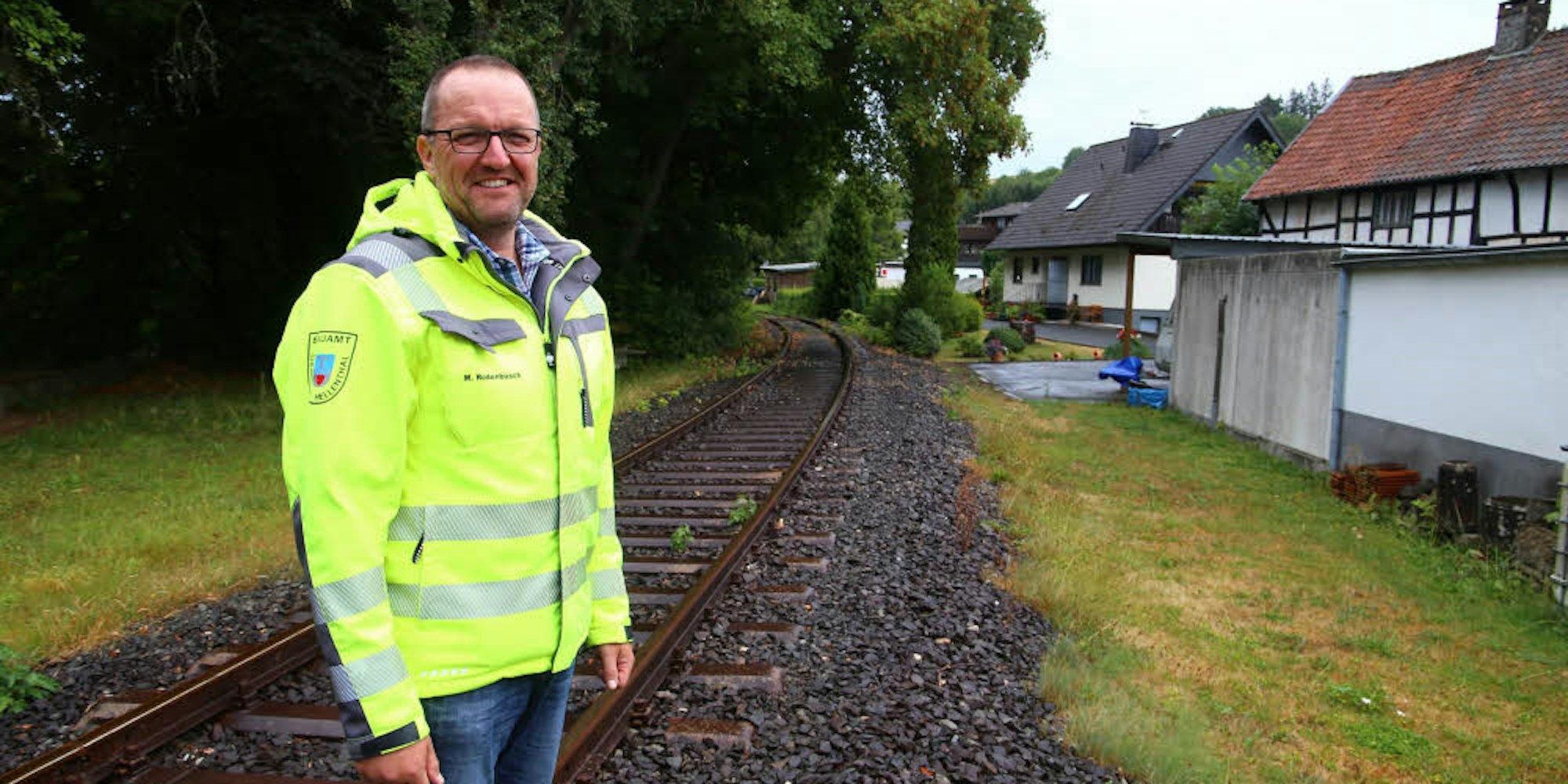 Über die Bahntrasse der Flitsch in Hellenthal soll der Verkehr geführt werden, wenn ab April 2019 die Bundesstraße saniert wird. Bauamts-Chef Markus Rodenbüsch stellte die Pläne vor.