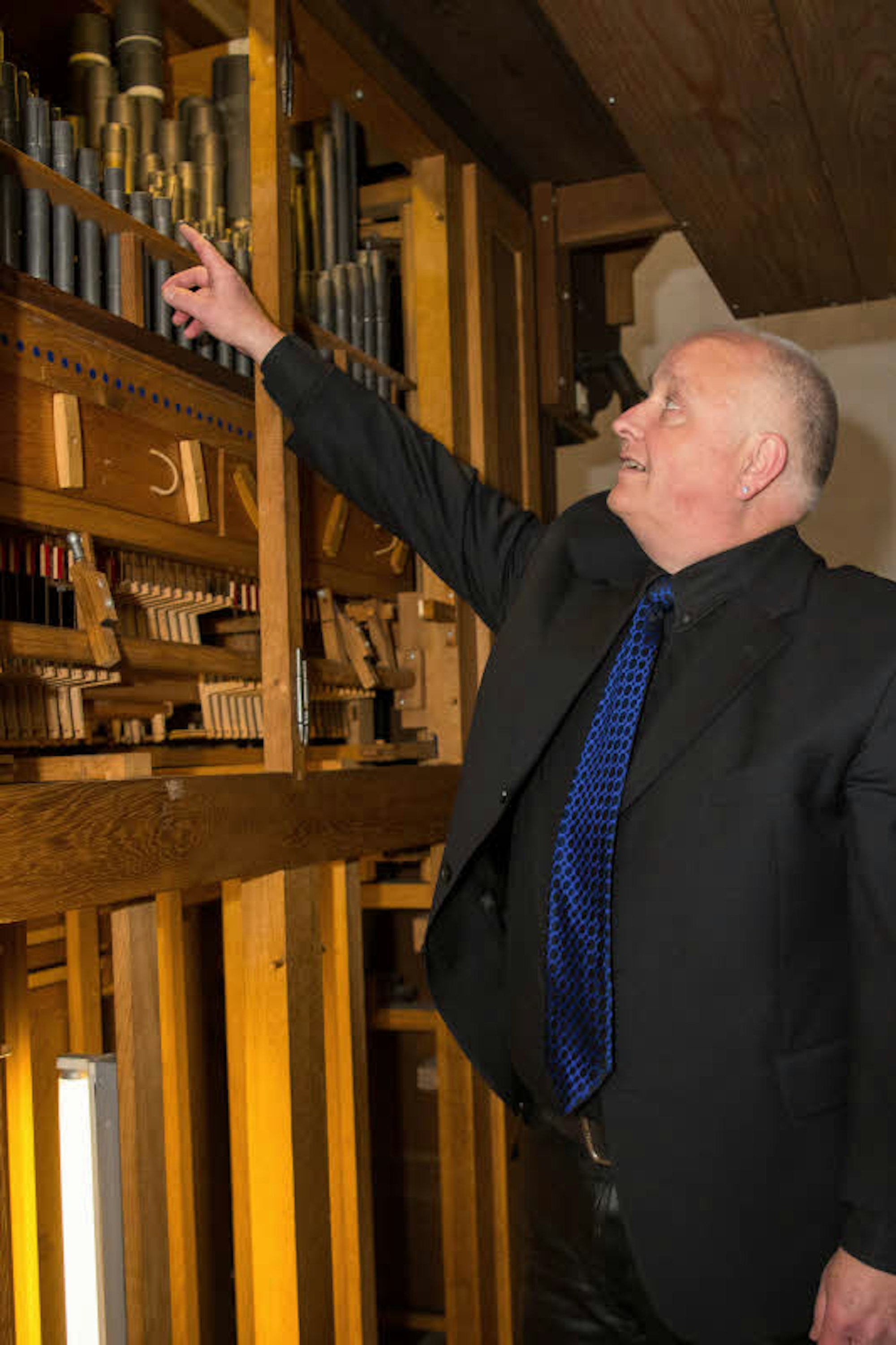 An das Spiel auf der barocken König-Orgel mit ihren Besonderheiten muss sich Organist Michael Pützer noch gewöhnen. Geübt wird auf dem eigenen Instrument daheim.