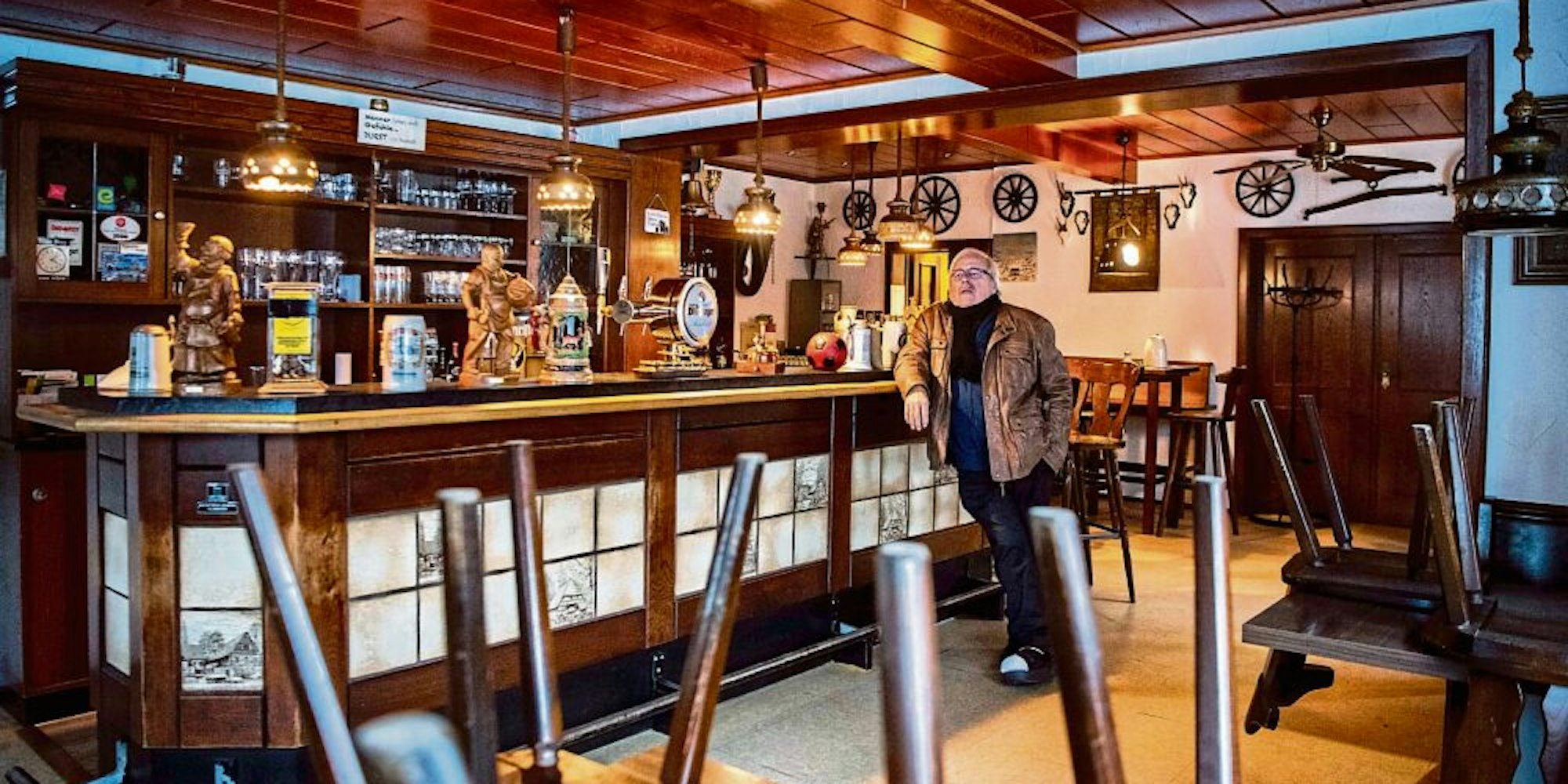 Auf der Theke der Gaststätte Prinz in Mutscheid stehen noch die Abstandhalter. Besitzer Manfred Prinz vermisst den Trubel – gerade an den Tagen des Straßenkarnevals wird sein Herz besonders schwer.