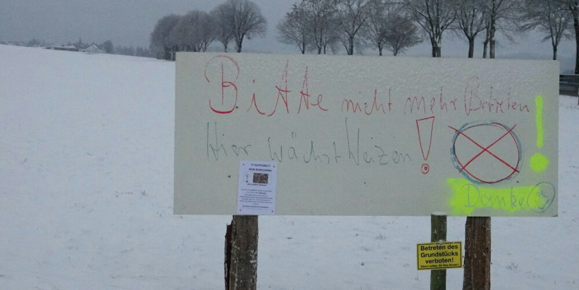 Als die Fahrzeuge fort gewesen seien, habe er das Feld eingezäunt und ein Schild aufgestellt. Doch am Sonntag seien dort wieder Leute unterwegs gewesen: „Die sind auf die Fläche vom Nachbarn gegangen.“