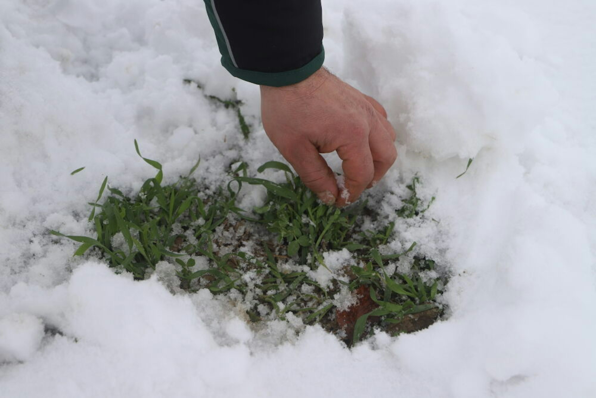 Winterroggen und Erbsen wachsen unter dem Schnee.