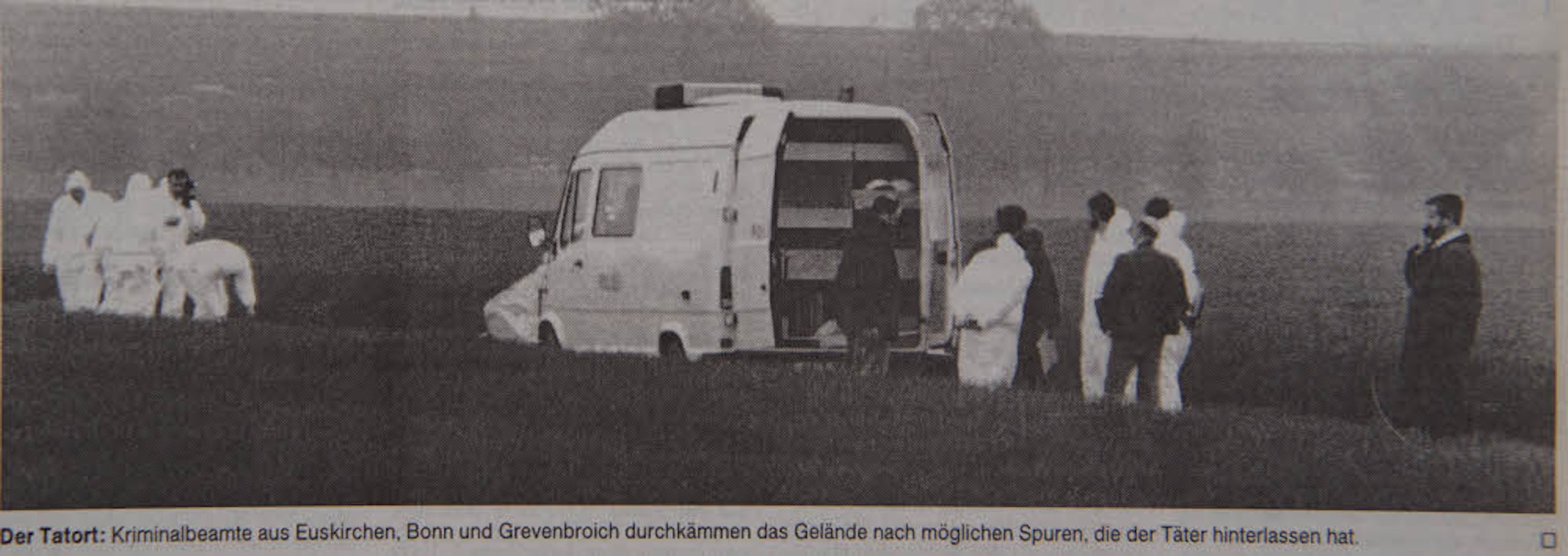 Beamte der Euskirchener Polizei und der Bonner Mordkommission sicherten Spuren bei Oberwichterich. Der Entführungs- und Mordfall erregte damals bundesweit Aufsehen. Nun hoffen die Ermittler auf eine heiße Spur.