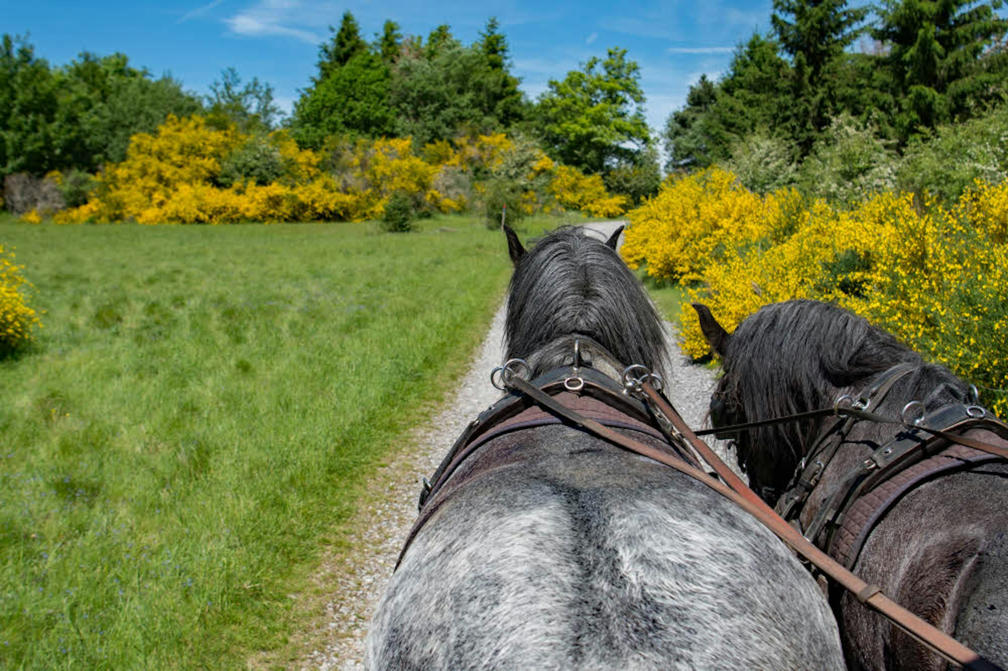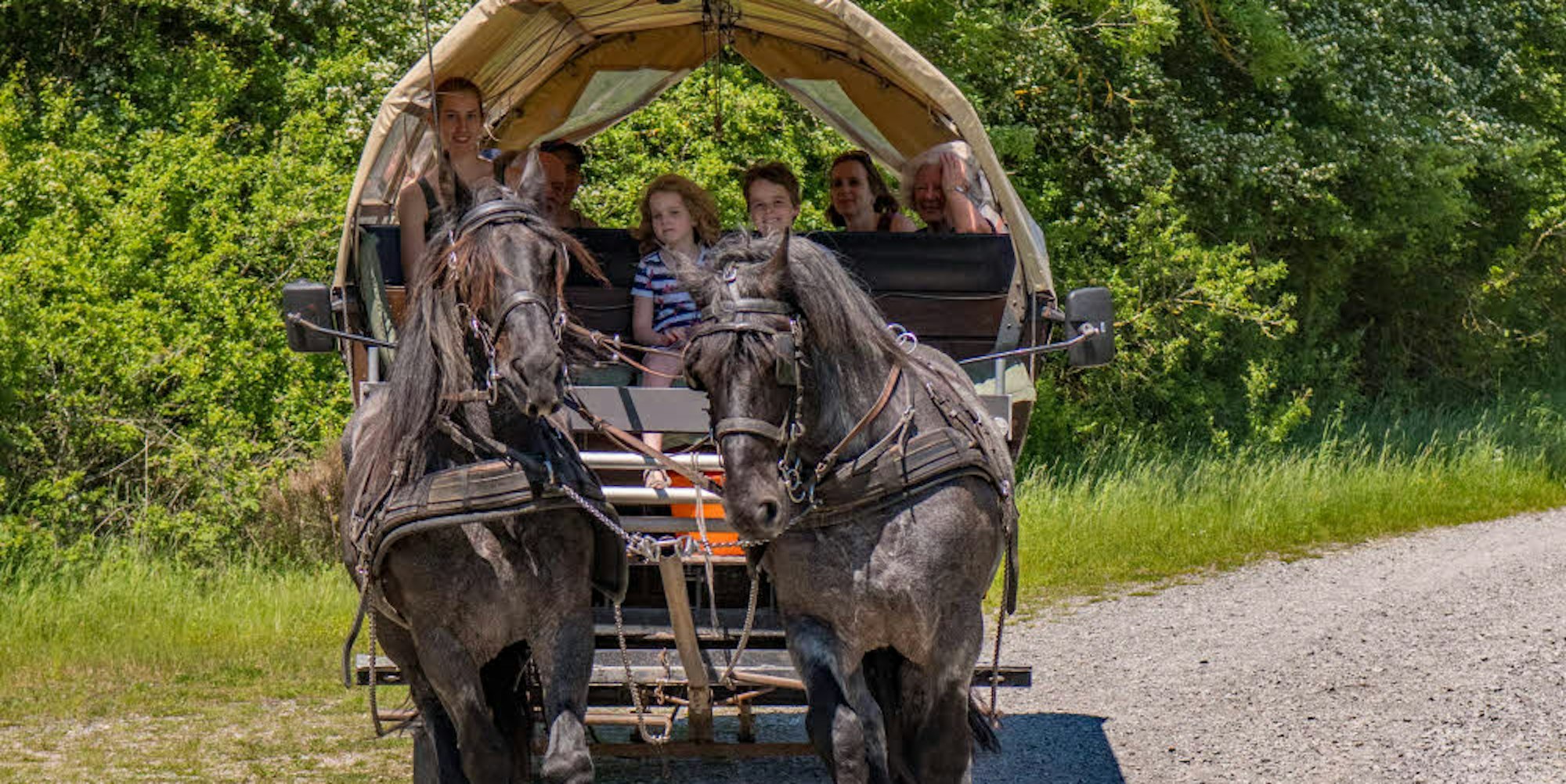 - Mit zwei Pferden vorweg führt die Strecke vom Nationalparkzentrum nach Wollseiffen.