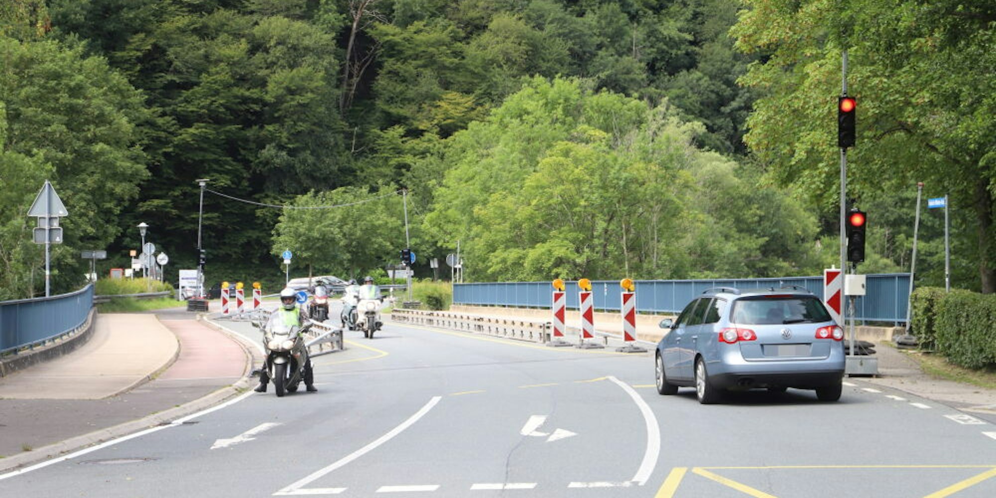 Die Vollsperrung der B266 in Richtung Einruhr soll laut Bernd Aulmann von Straßen NRW voraussichtlich bis zum 24. Juli dauern. Sie sei nötig, weil anders geltende Sicherheitsabstände zwischen Verkehr und Baustelle nicht einzuhalten seien. Seit März 2018 ist die Brücke in Einruhr wegen mangelnder Tragfähigkeit nur einspurig befahrbar. Laut Aulmann soll im Herbst 2021 eine Behelfsbrücke errichtet und bis 2023 eine neue Brücke gebaut werden.