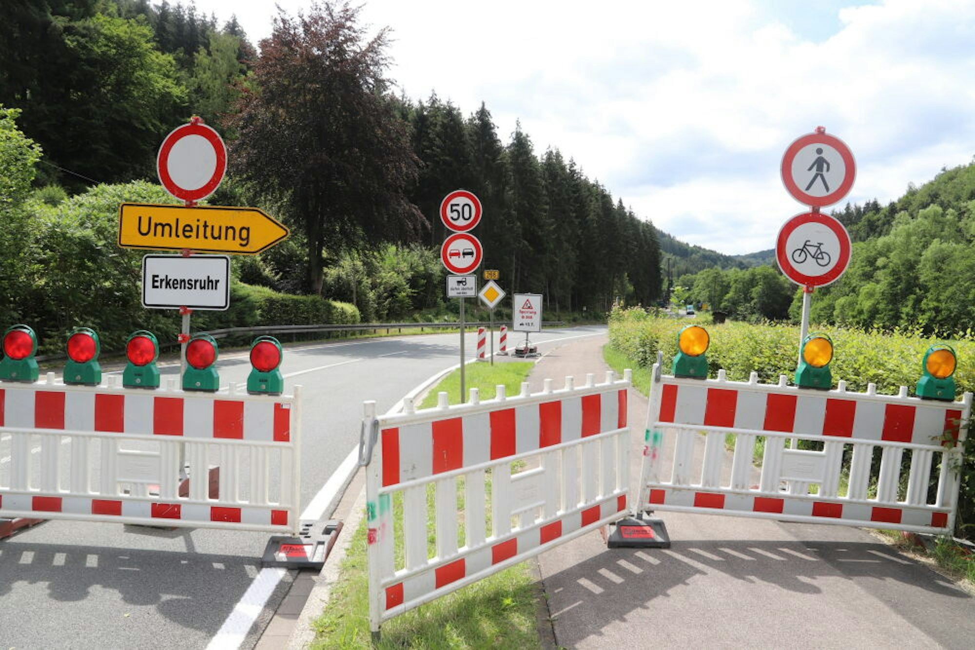 Die B266 zwischen Vogelsang und Einruhr ist gesperrt. Nächste Woche soll der Verkehr von Erkensruhr nach Schleiden wieder fließen.