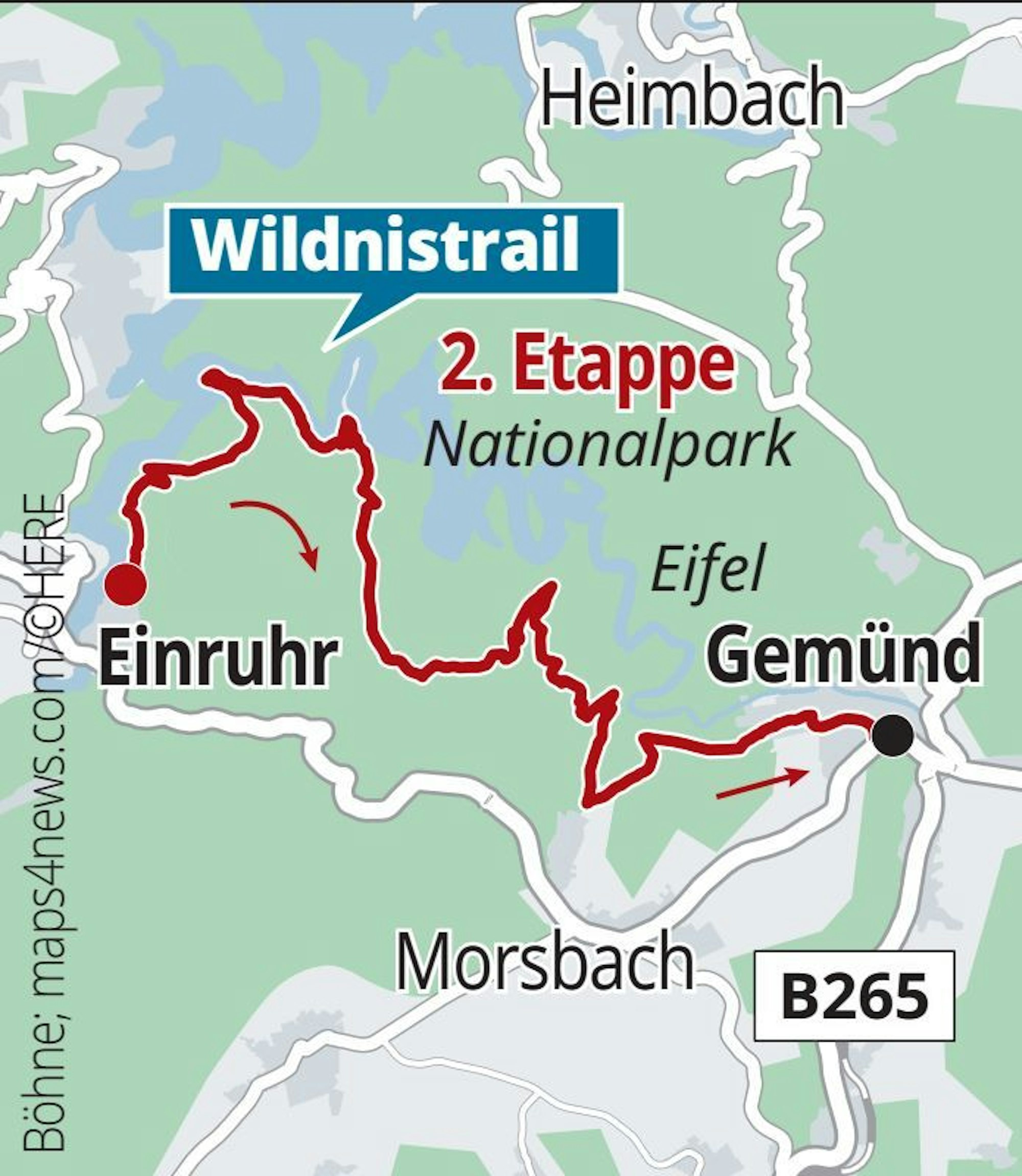 - Auf dem Weg liegen die Wüstung Wollseifen und der Komplex Vogelsang — zwei historisch bedeutsame Orte.