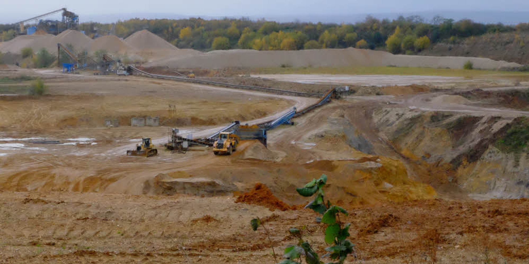 Eine der Kiesgruben an dem Wirtschaftsweg, der bald zur Südtangente umgewidmet werden soll. Viele weitere Flächen südlich und westlich von Müggenhausen und Schwarzmaar sollen ausbeutet werden. Dadurch dürfte der Schwerverkehr zunehmen.