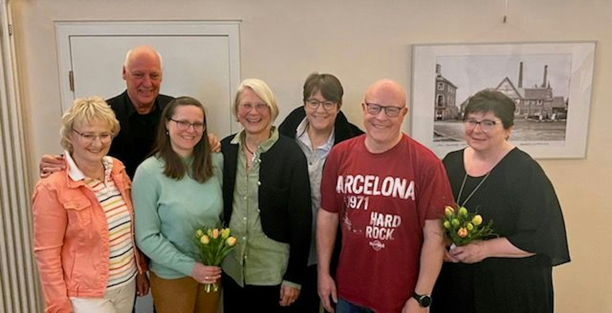 Der neue Vorstand des Kulturvereins (v.l.): Renate Bergfelder-Weiß (stellvertretende Geschäftsführerin), Wolfgang Schumacher (Obmann Badehaus), Lisa Petzold-Sauer (Geschäftsführerin), Jelle von Dryander (Vorsitzende), Petra Wengenroth-Büscher (stellvertretende Kassiererin, Vermietung), Ulli Sandtner (Kassierer), Gabriele Breidenbach (stellvertretende Vorsitzende).