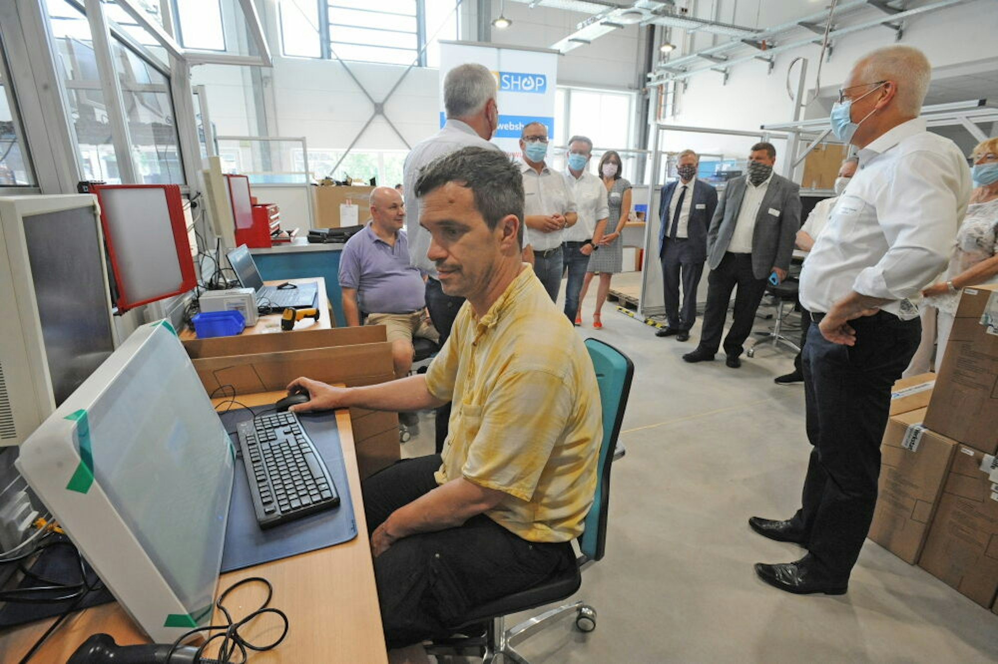 Im Betrieb für IT-Dienstleistungen und Webshop-Logistik sind 36 Arbeitsplätze entstanden: Joachim Oerder am PC.