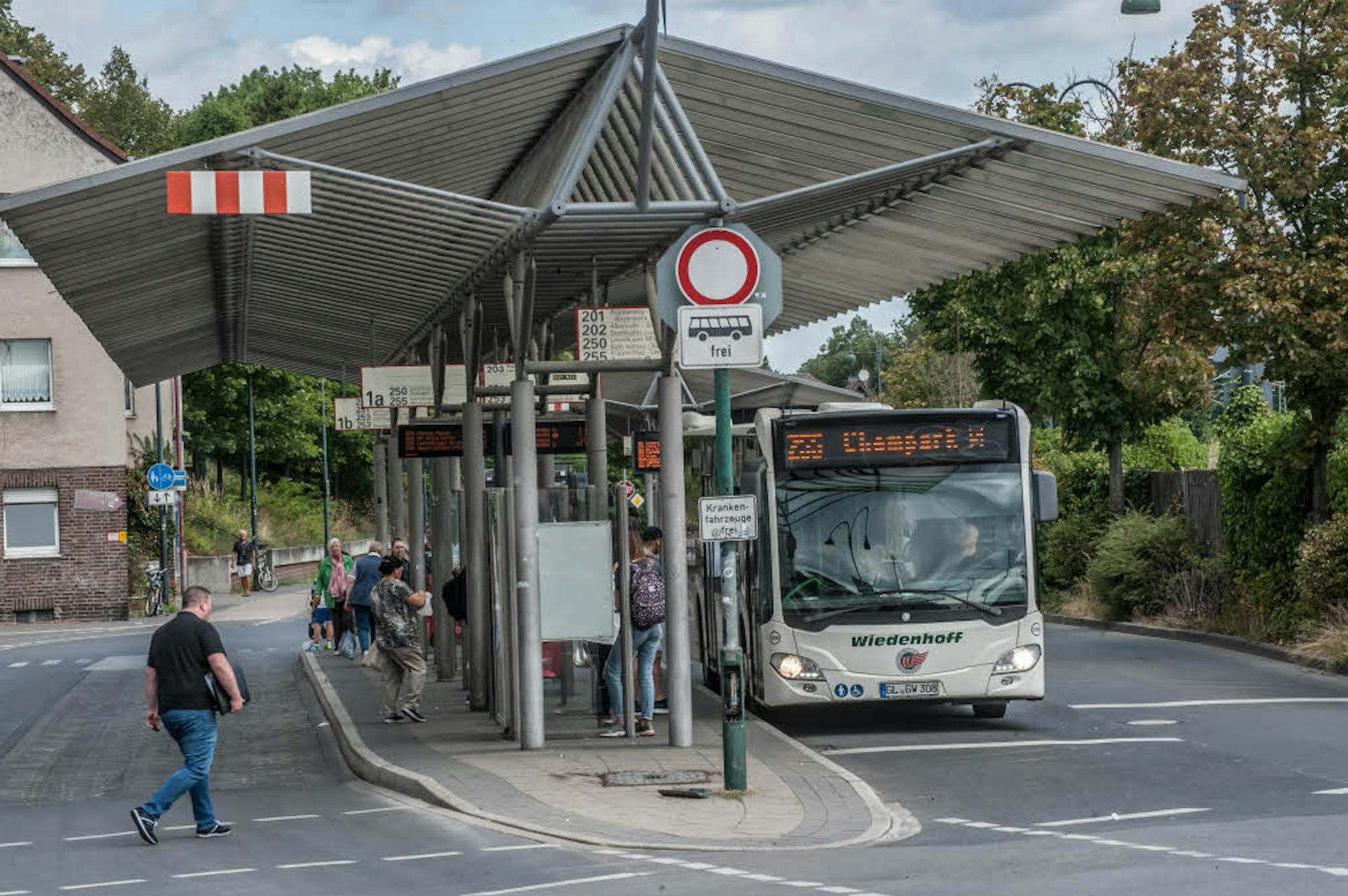 Der Leichlinger Busbahnhof am Stadtpark verfügt nur über einige kleinere überdachte Unterstände.