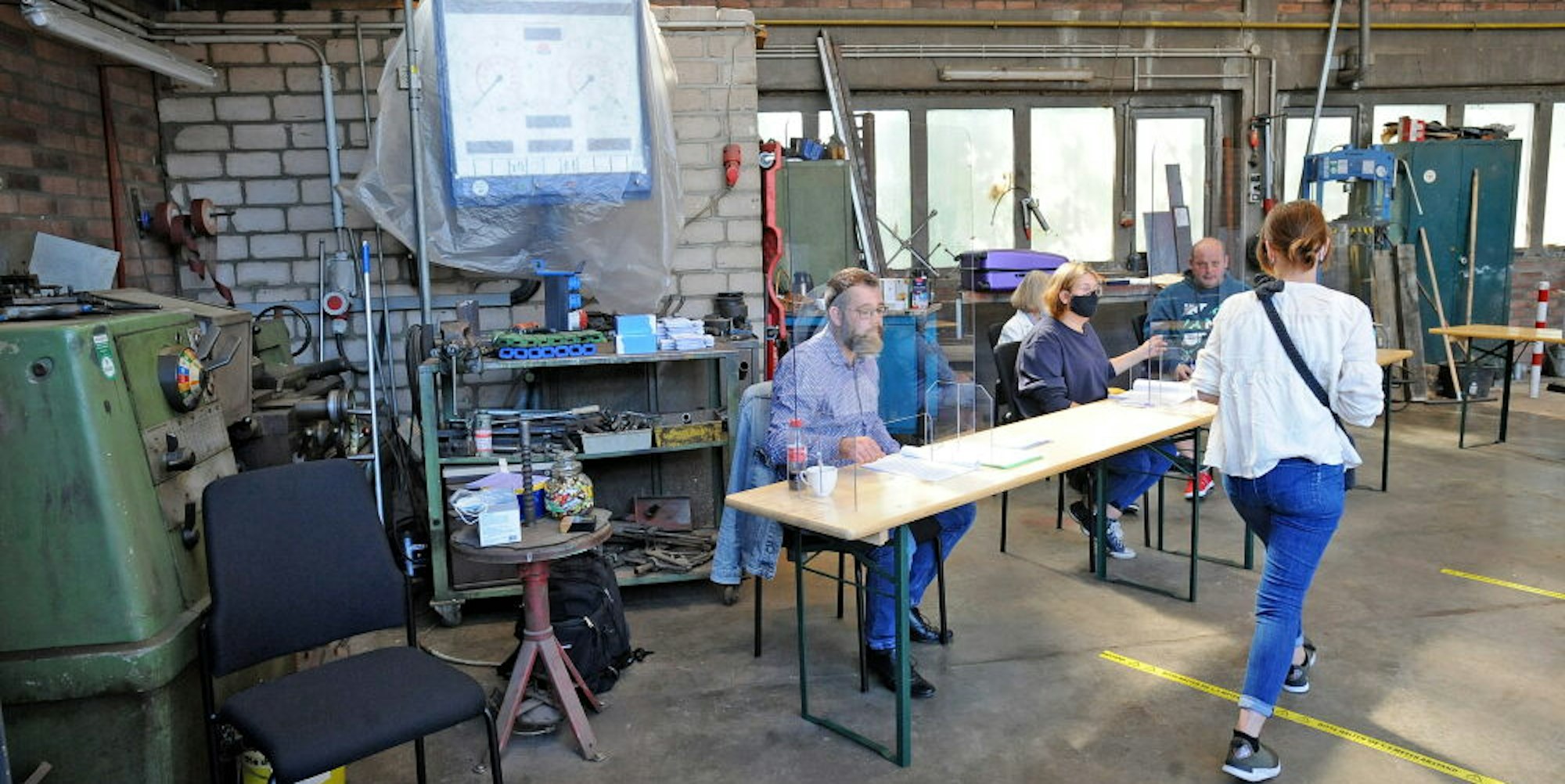 Werkstatt-Atmosphäre: Stimmabgabe am Sonntag im Wahllokal des Bezirks 4 im städtischen Bauhof am Stockberg.